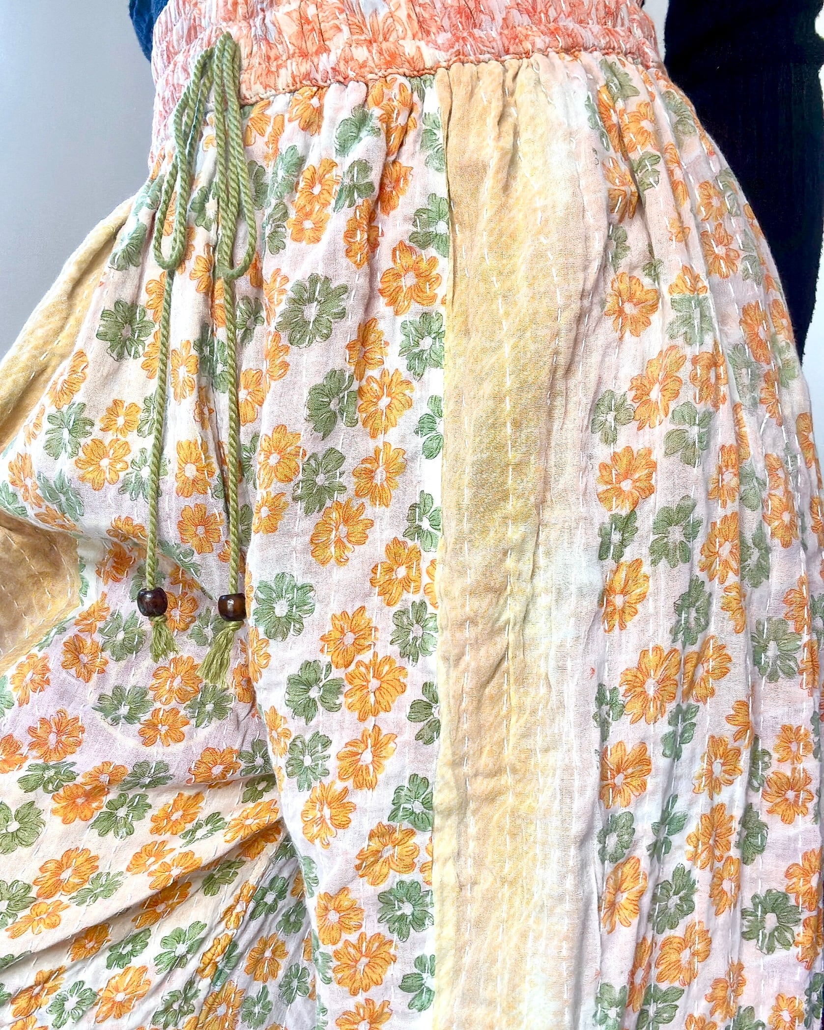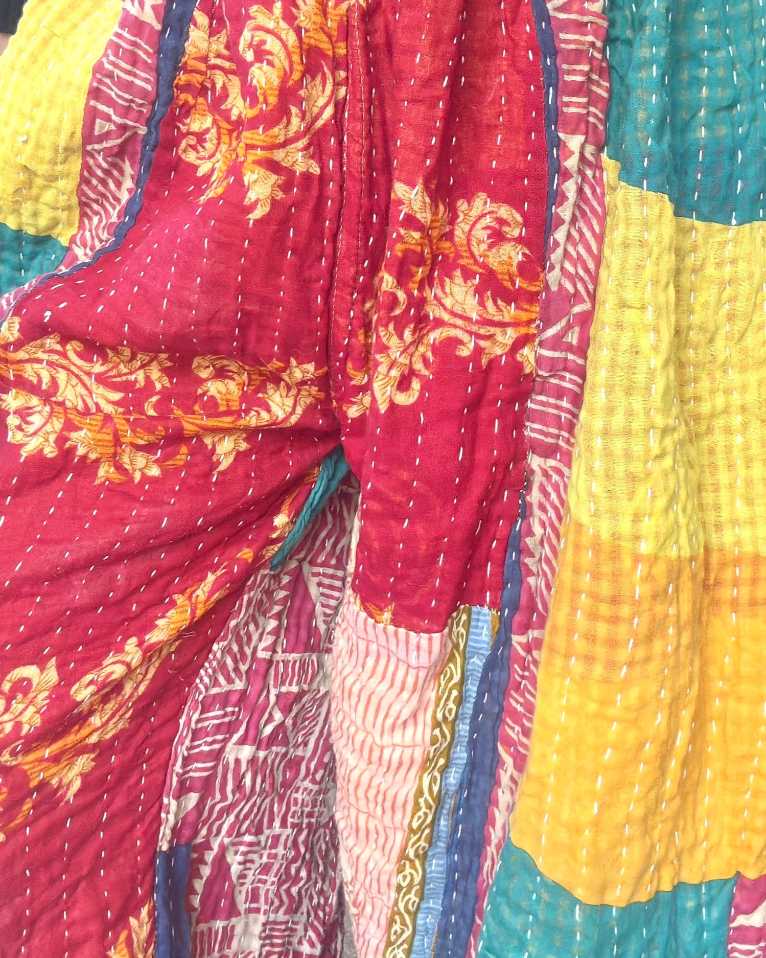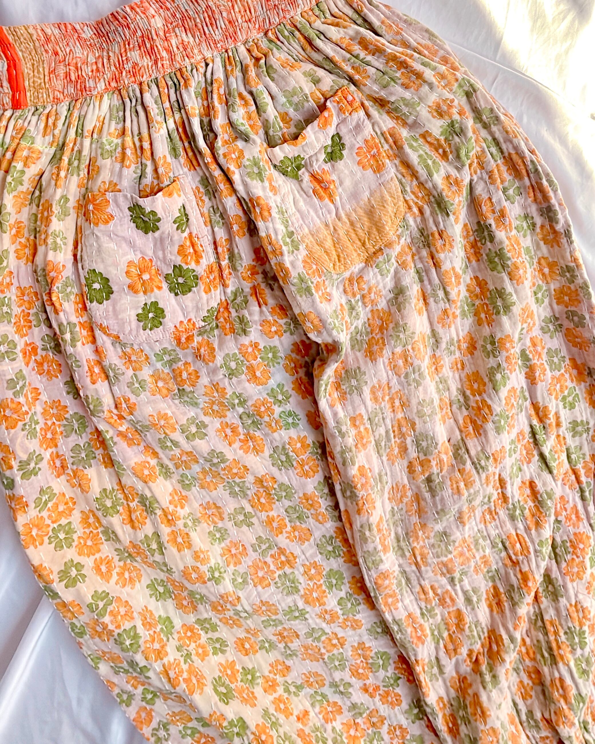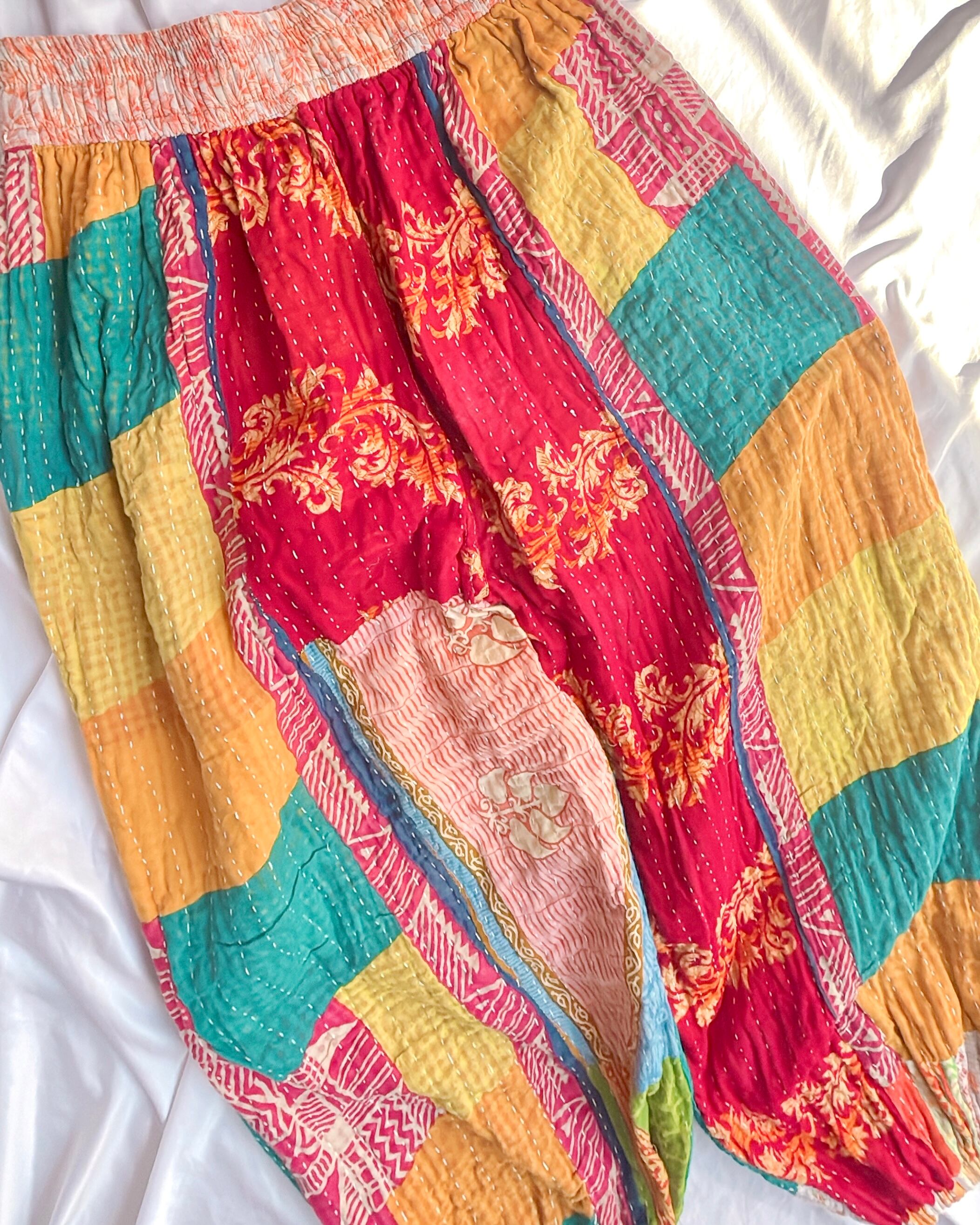 厚手カンタリバーシブルアラジンパンツ/アーススプリングカラフル
