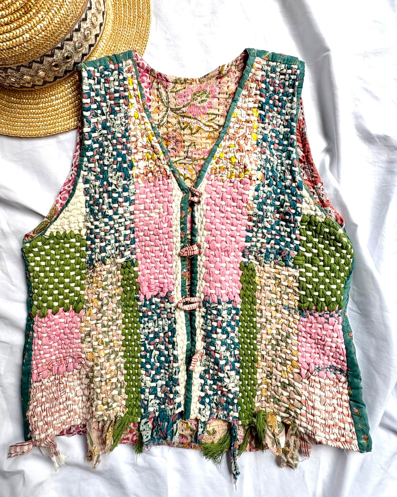 リバーシブルで2つの雰囲気が楽しめる、一点もののハンドメイドベストです✴︎