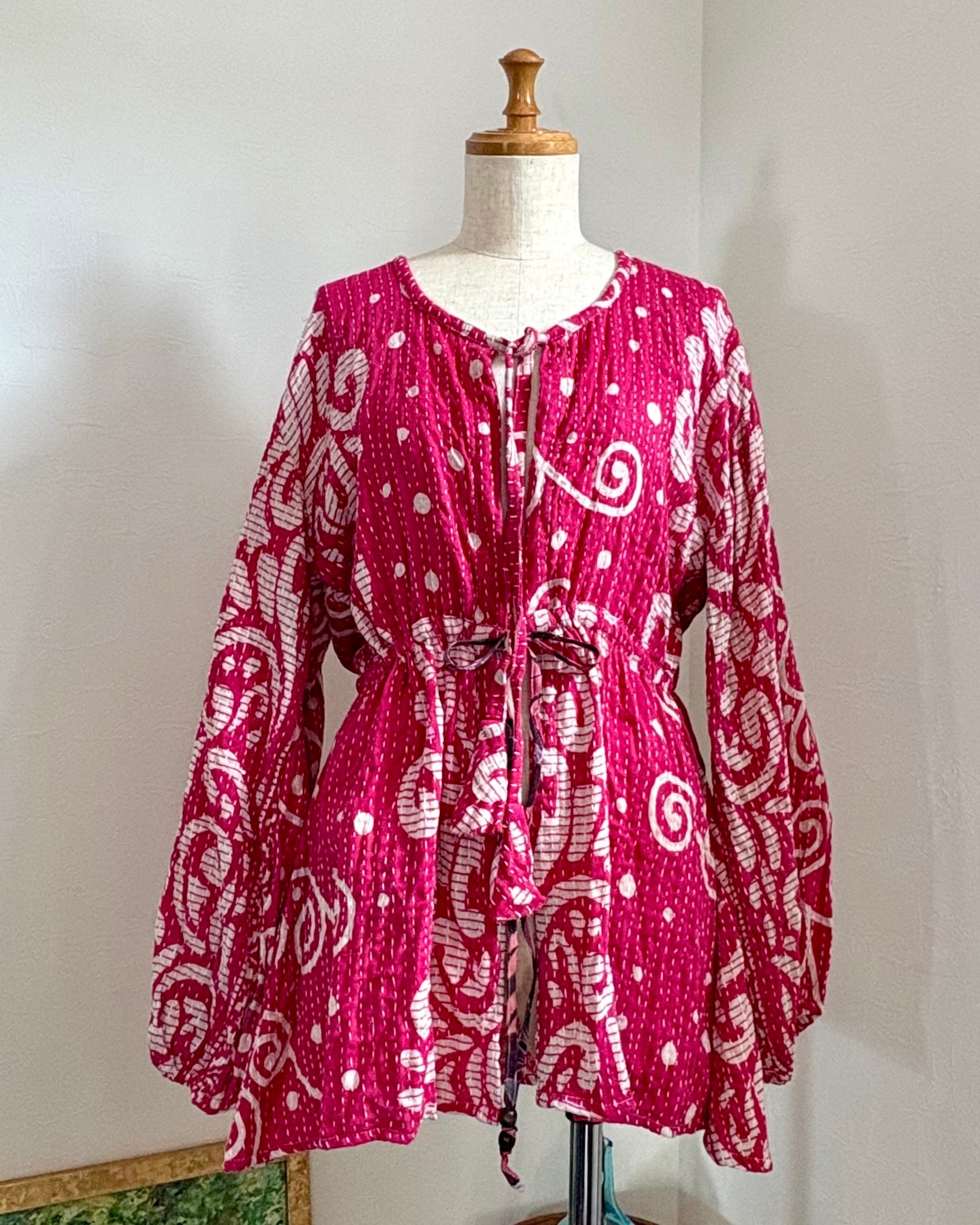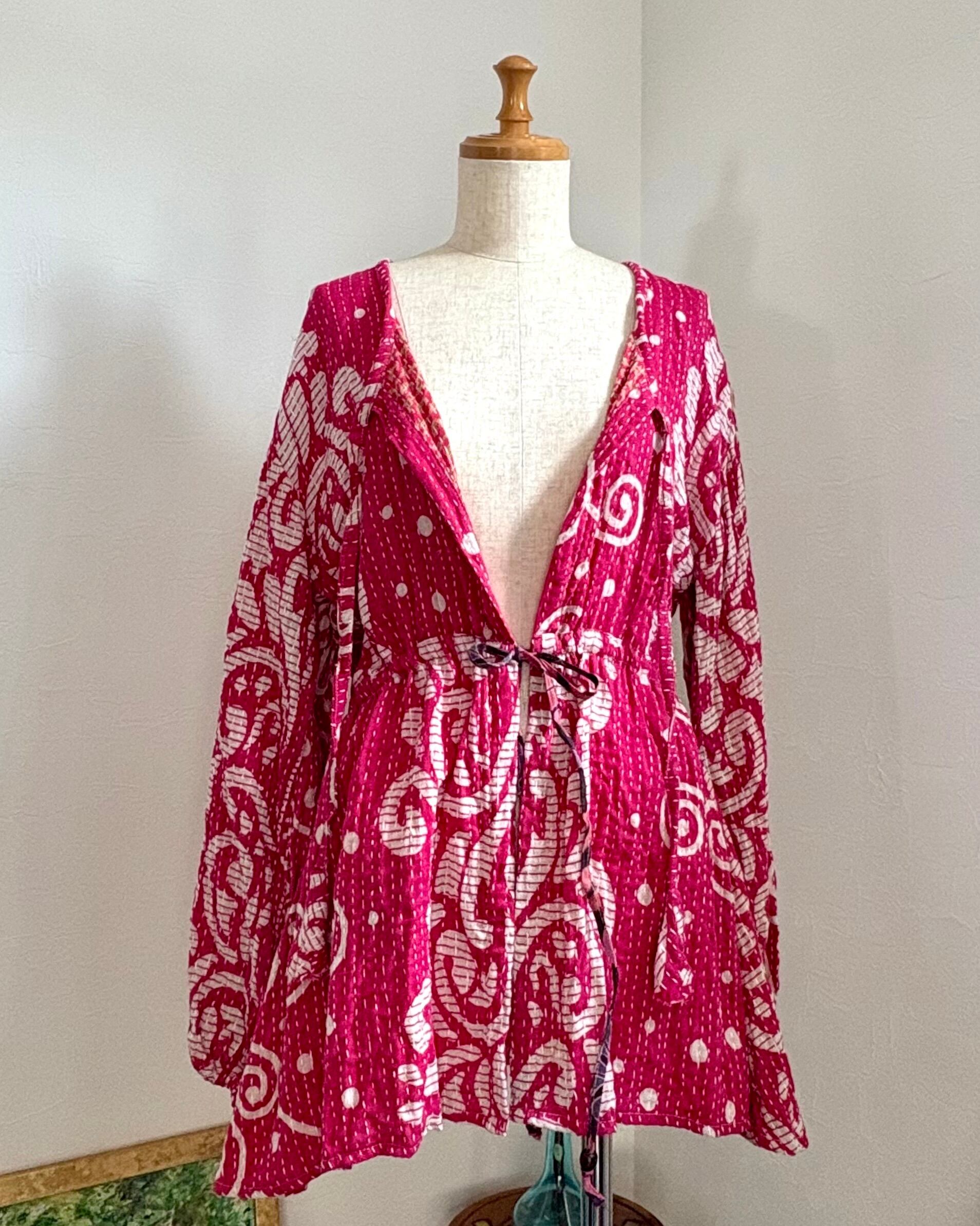 薄手のコットンカンタで羽のように軽い、フェザーローブブラウスです♬