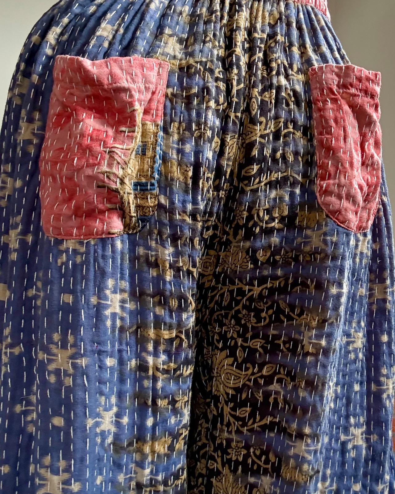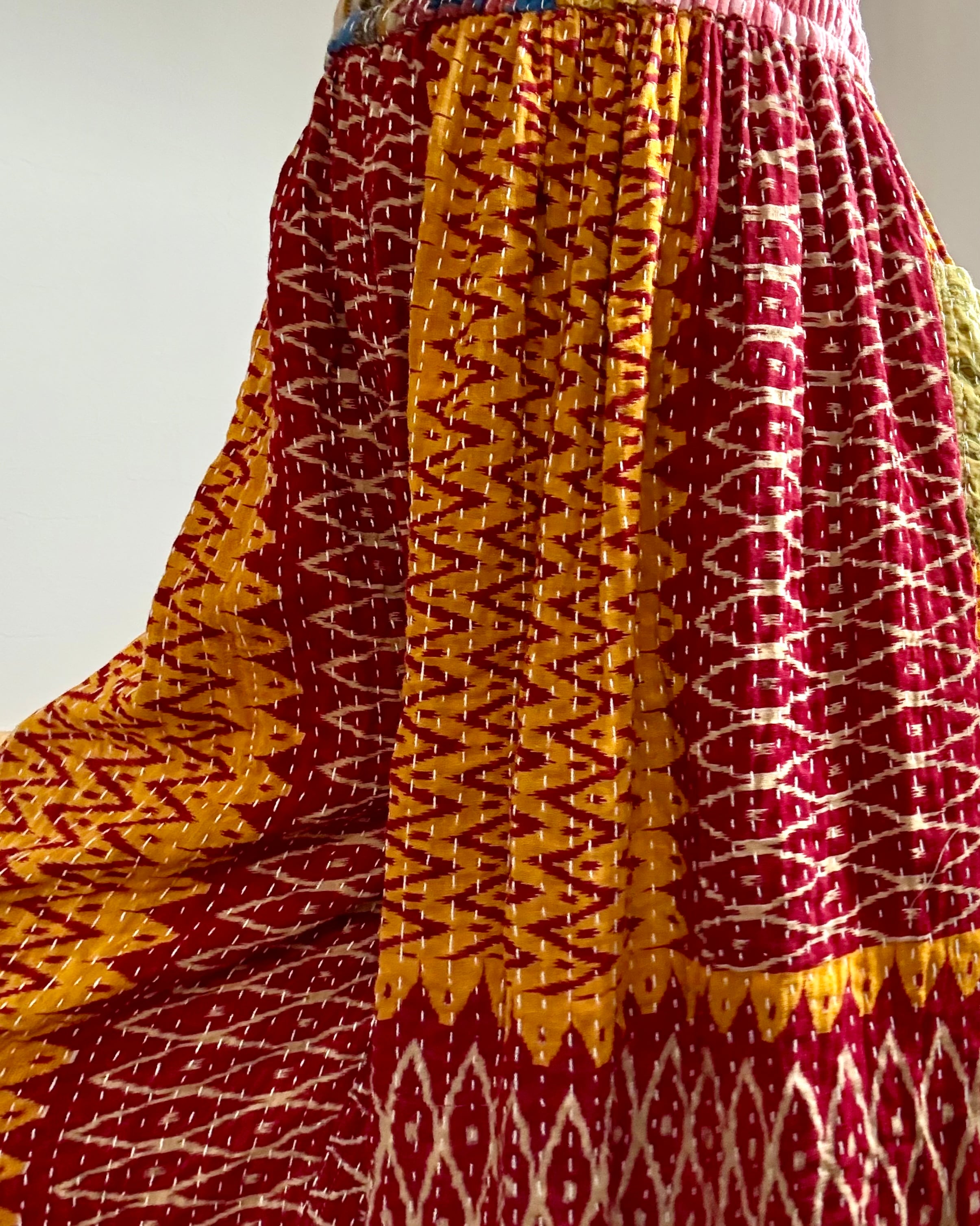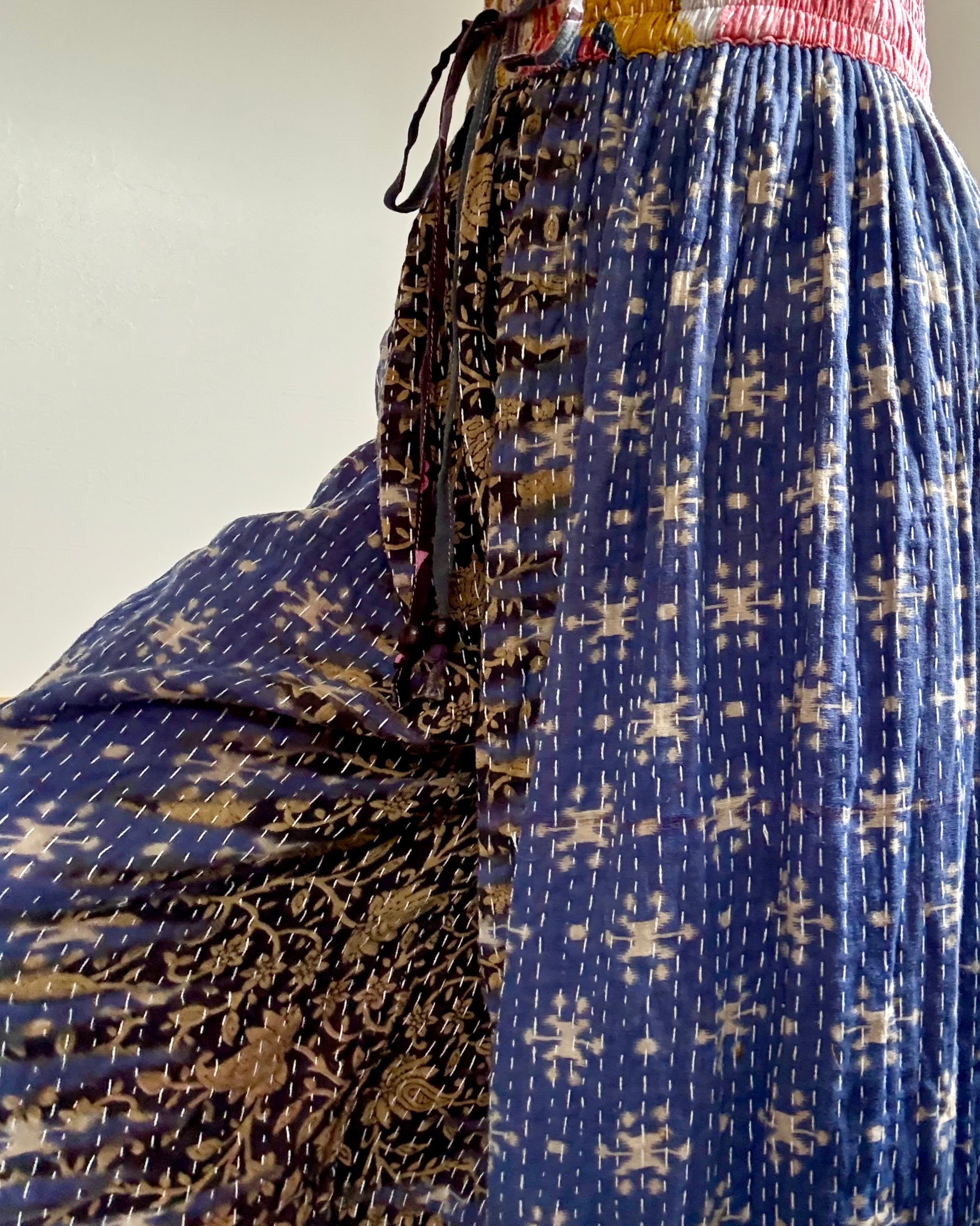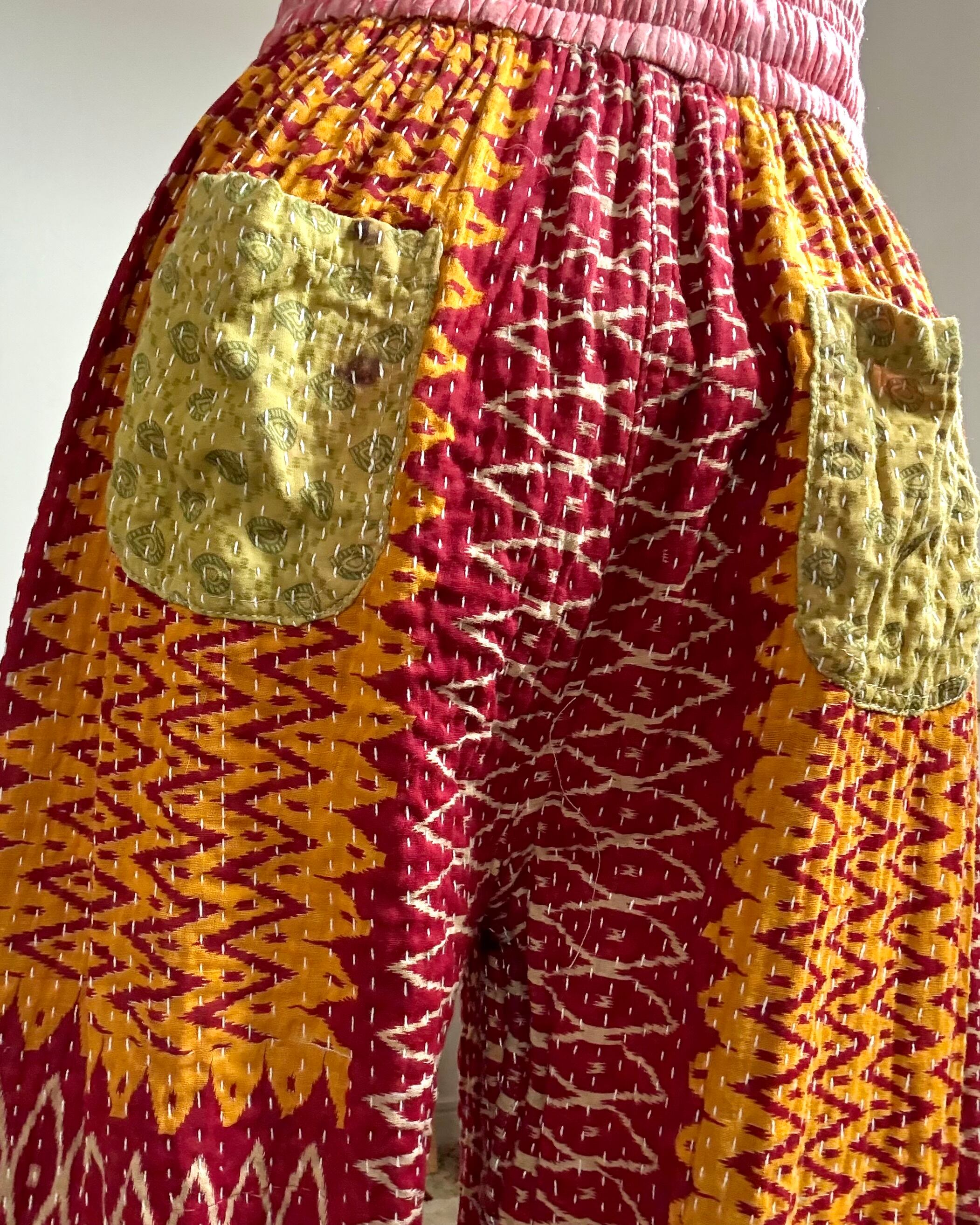 こちらはコットンサリーを2枚重ねて刺し子した、薄手タイプのアラジンパンツです✴︎