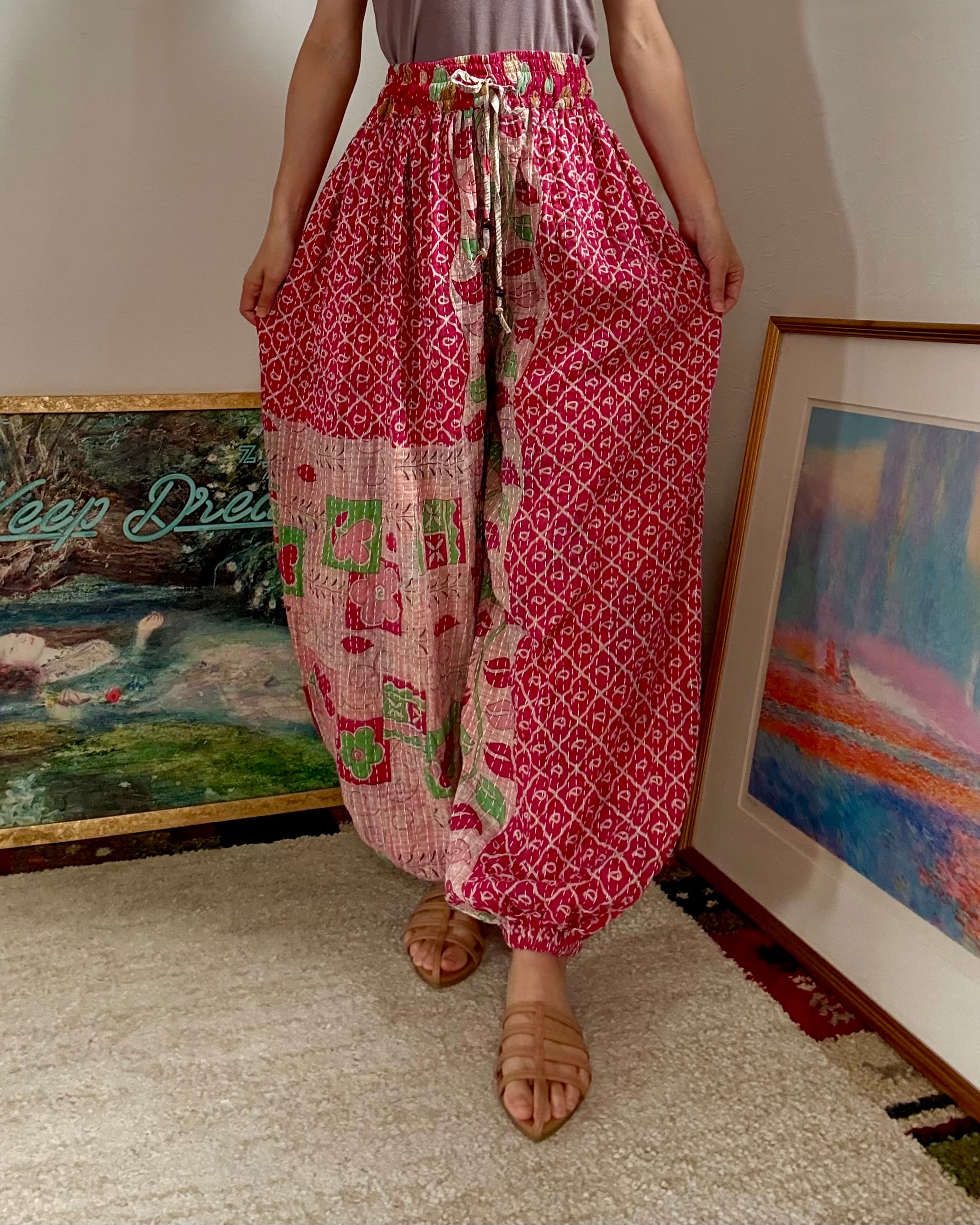 こちらはコットンサリーを2枚重ねて刺し子した、薄手タイプのアラジンパンツです✴︎