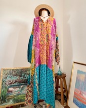 ハートくつろぐワンピース/ボタニカルフラワーピンクブルー