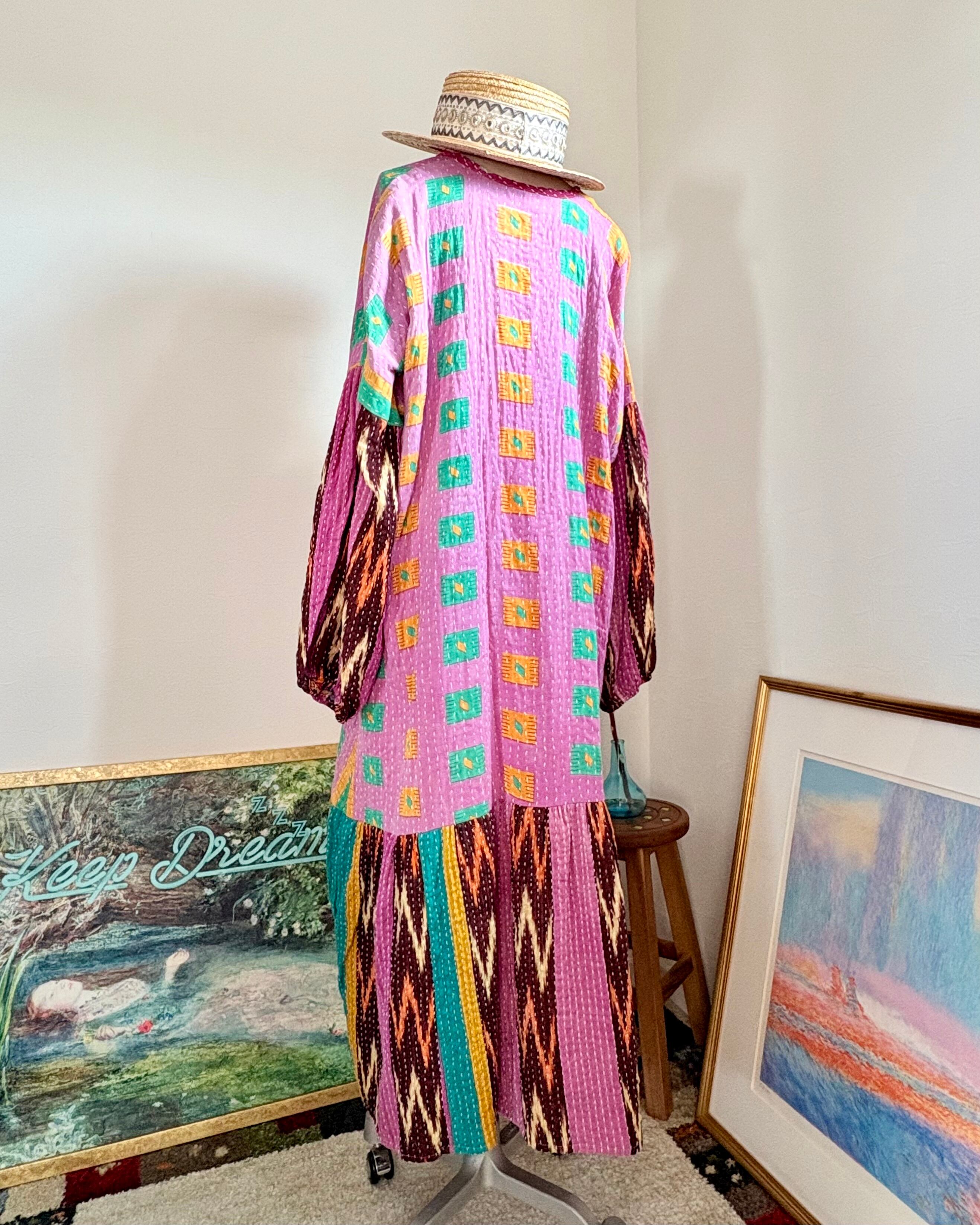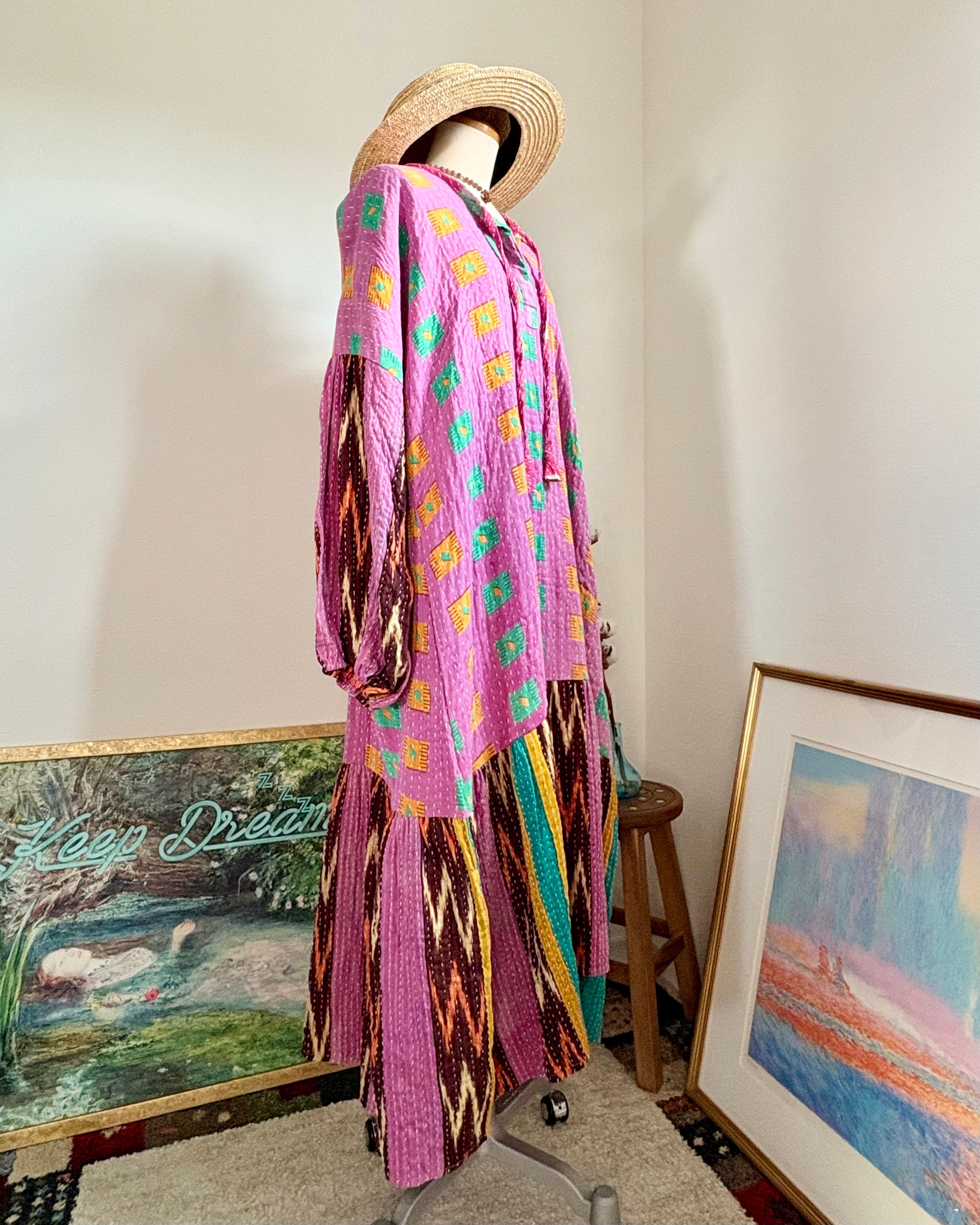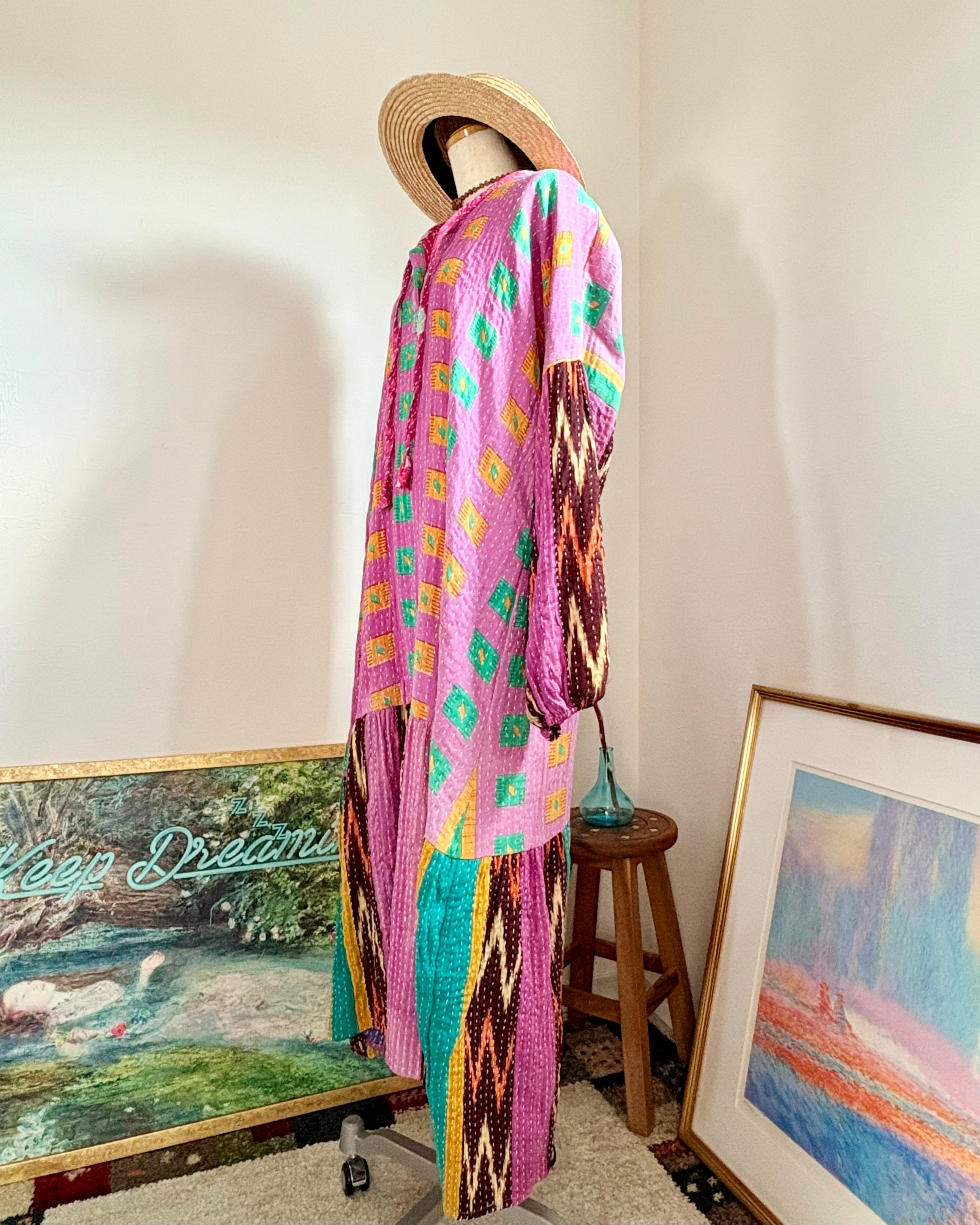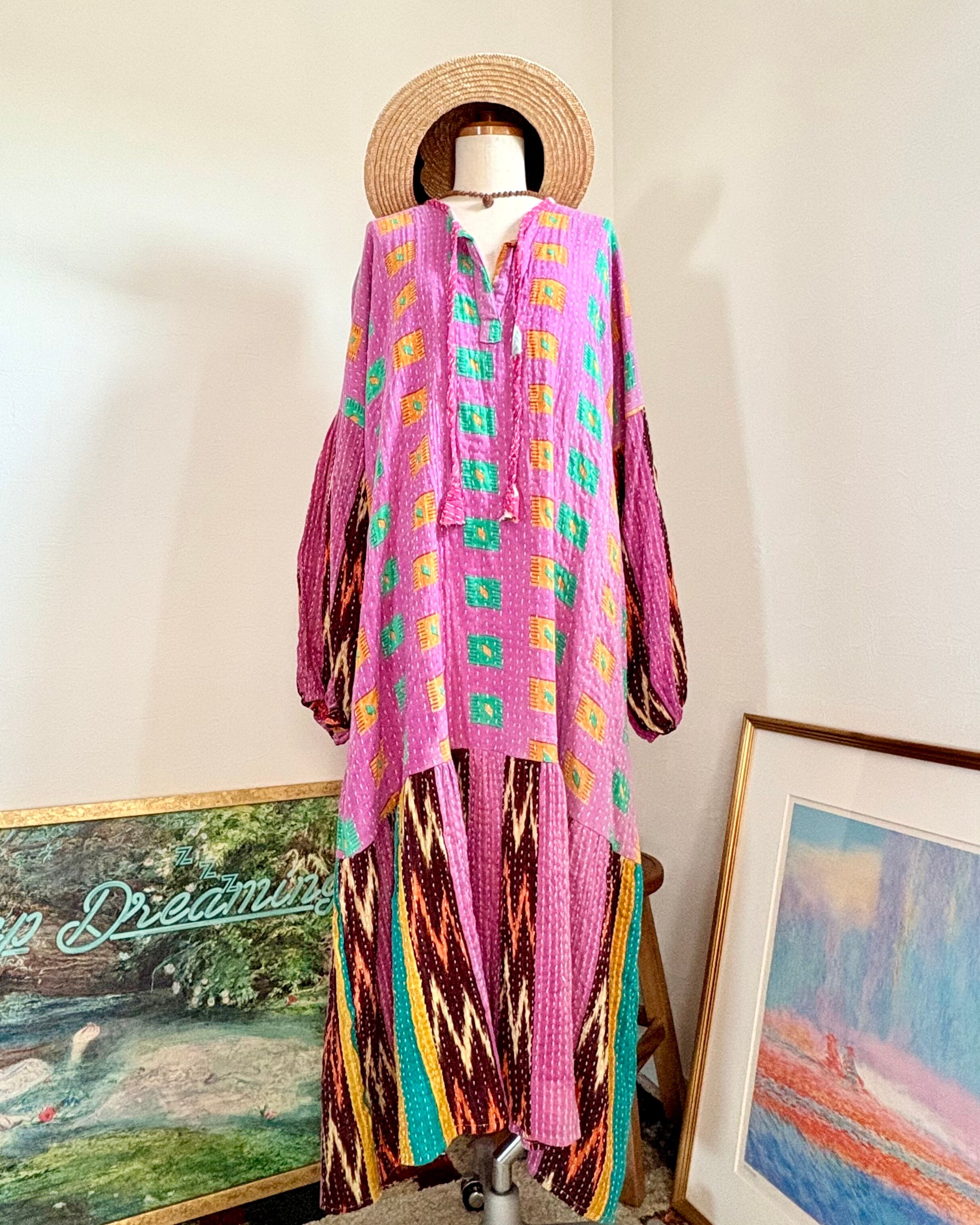 ハートくつろぐワンピース/スクエアドットピンク