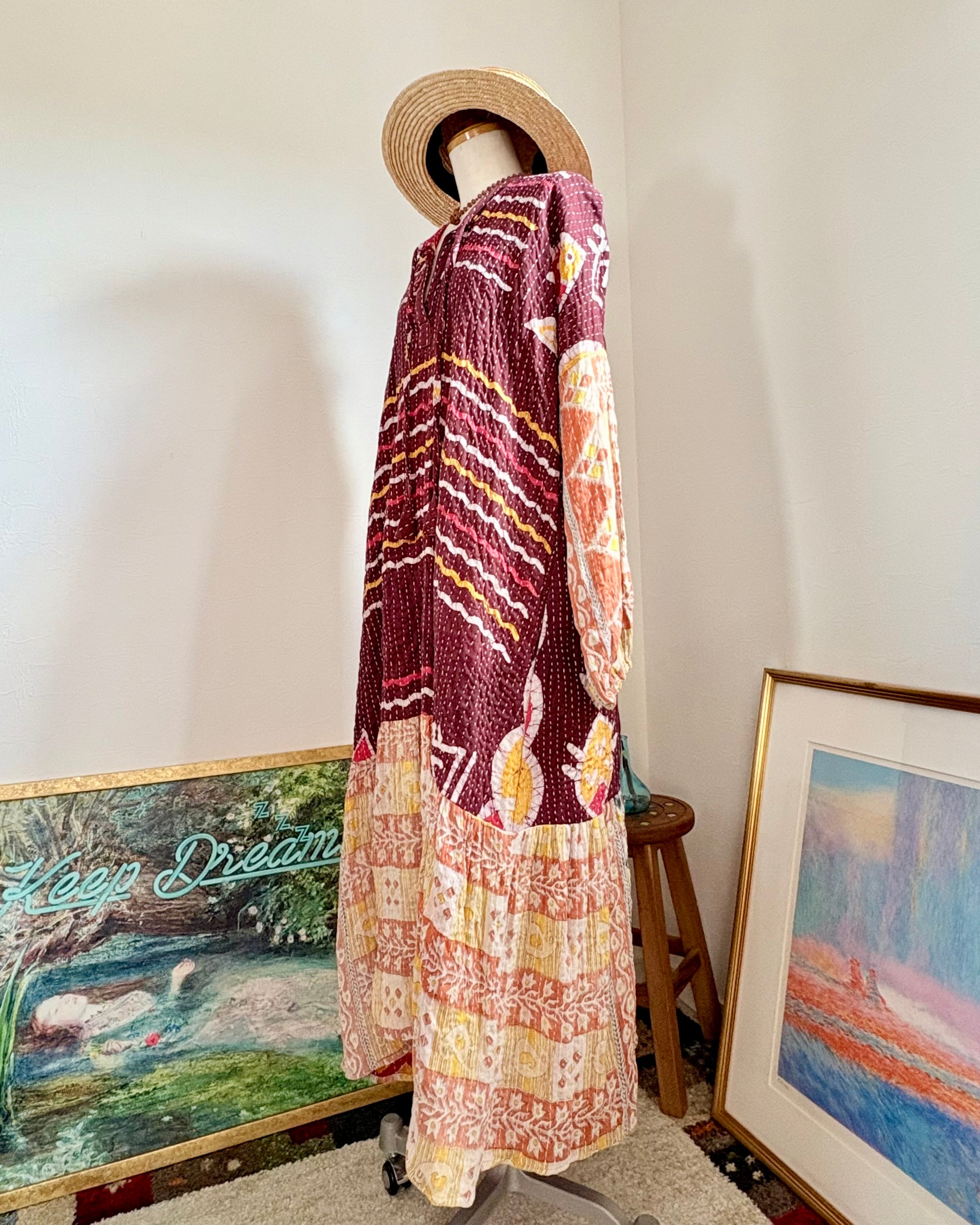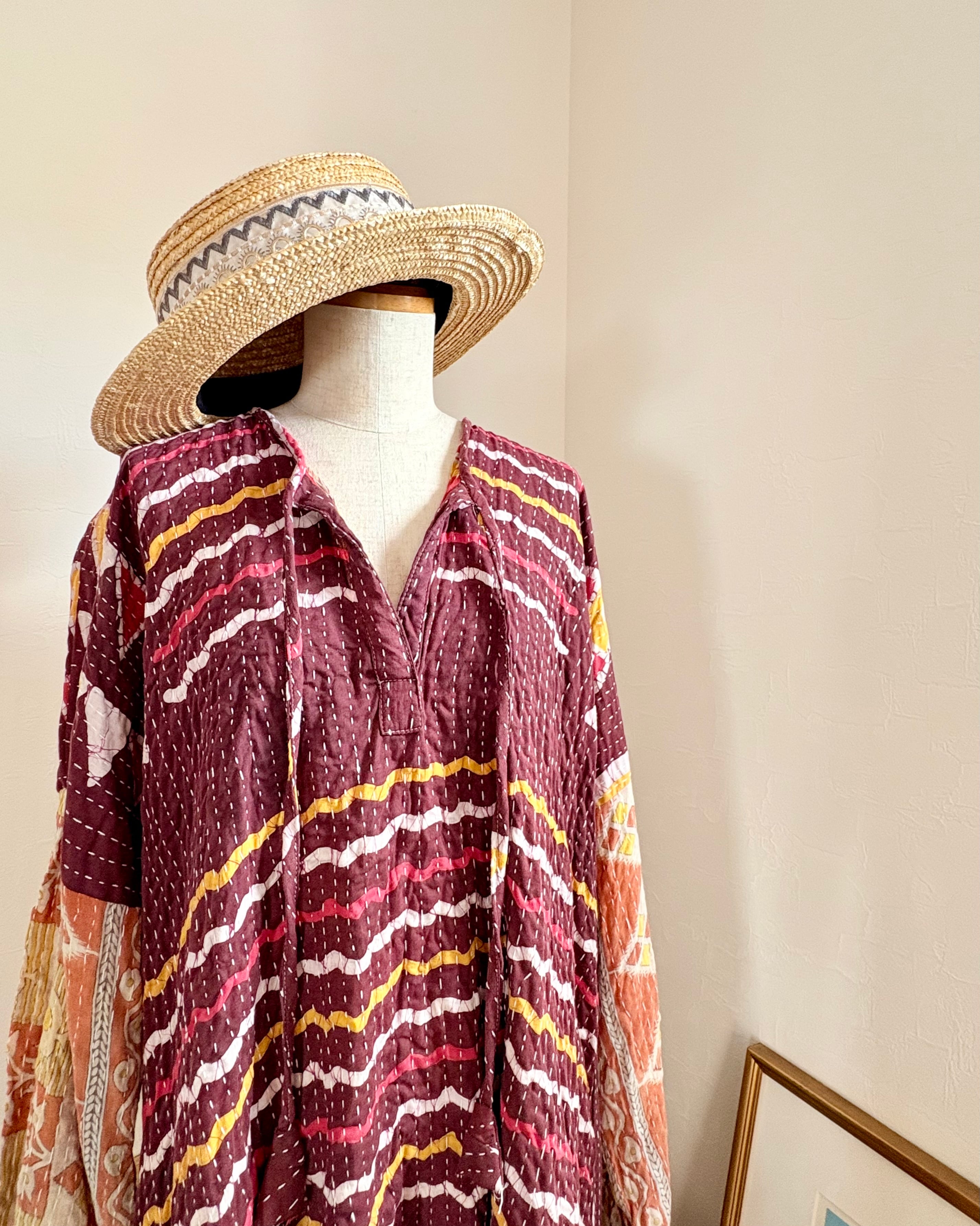 落ち着いたアズキカラーに差し色のボーダーと、袖と裾のヴィンテージ感が可愛い、素敵な一品です♡