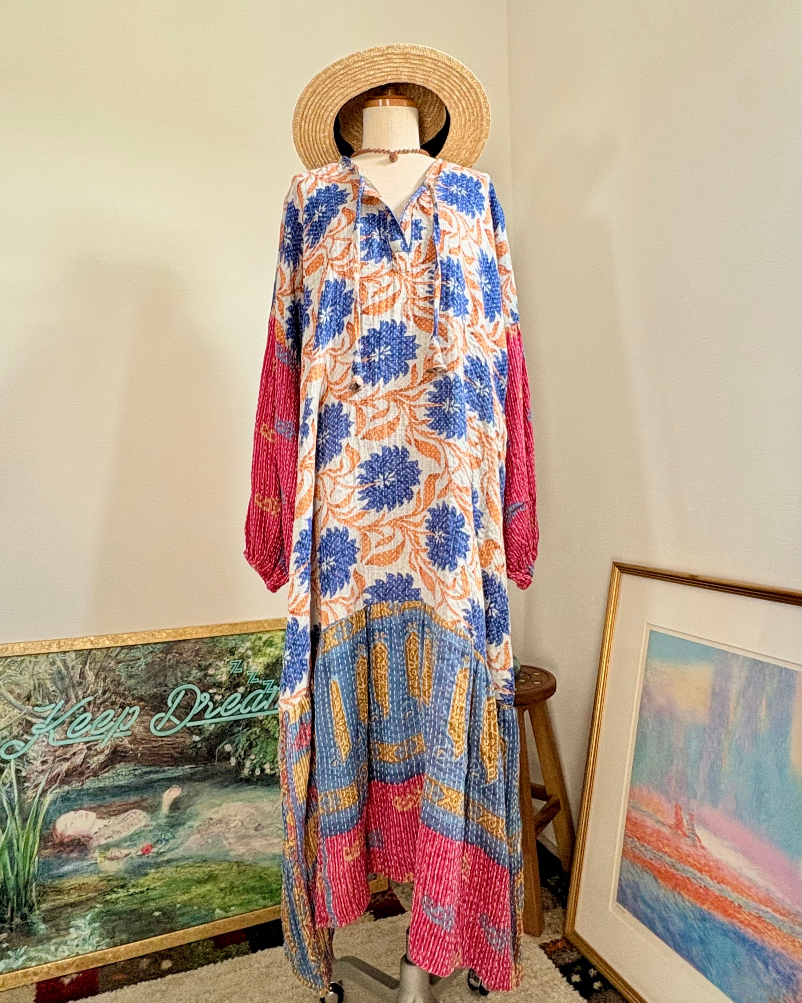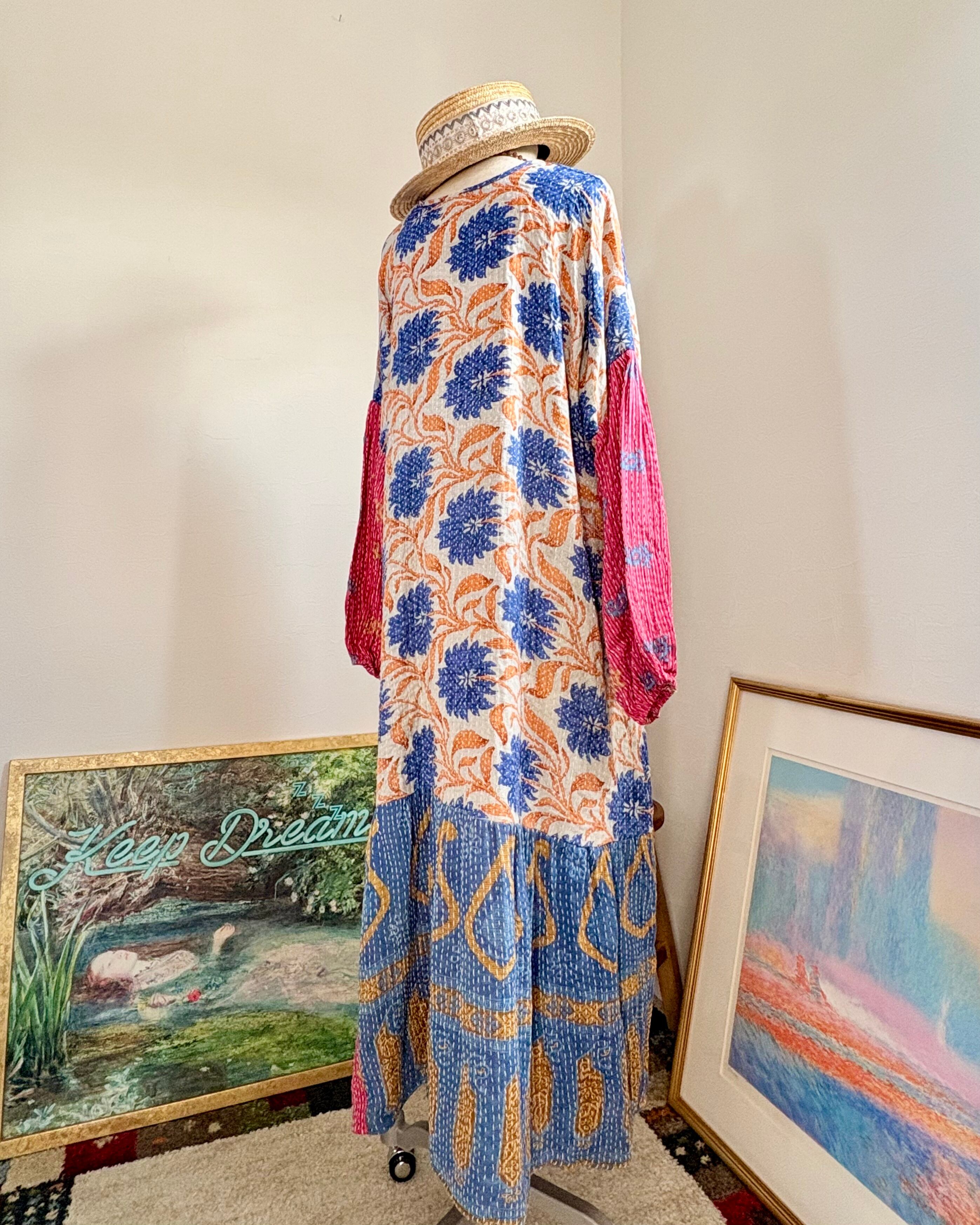 ブルーの大ぶりの花柄とヴィンテージ感が絶妙なバランスで華やかなのに落ち着きのある、オシャレな午後のイメージが湧く素敵な一品です♡