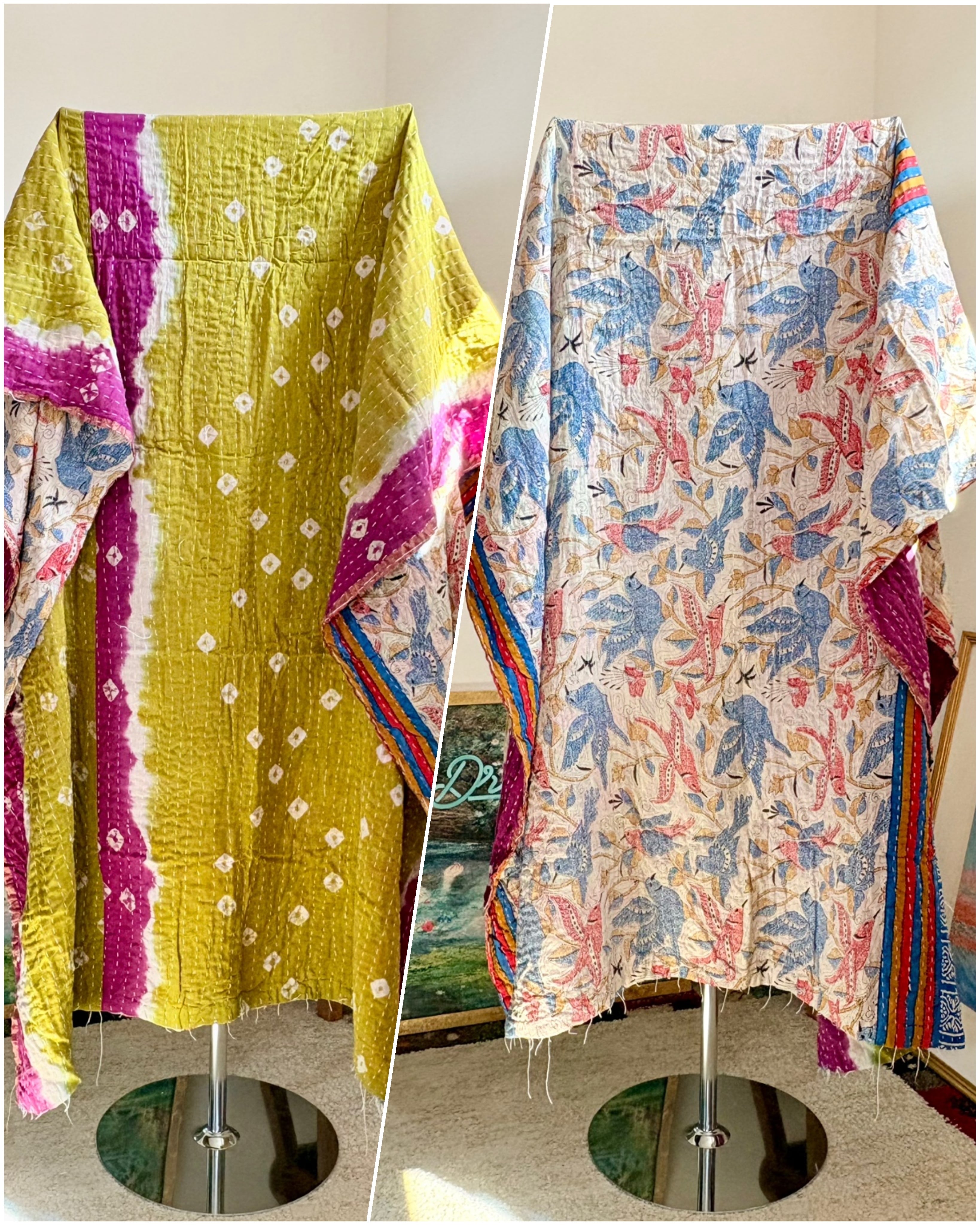 (カンタはヴィンテージサリーをハンドメイドで刺し子したお作りのため数センチの誤差があることがあります)