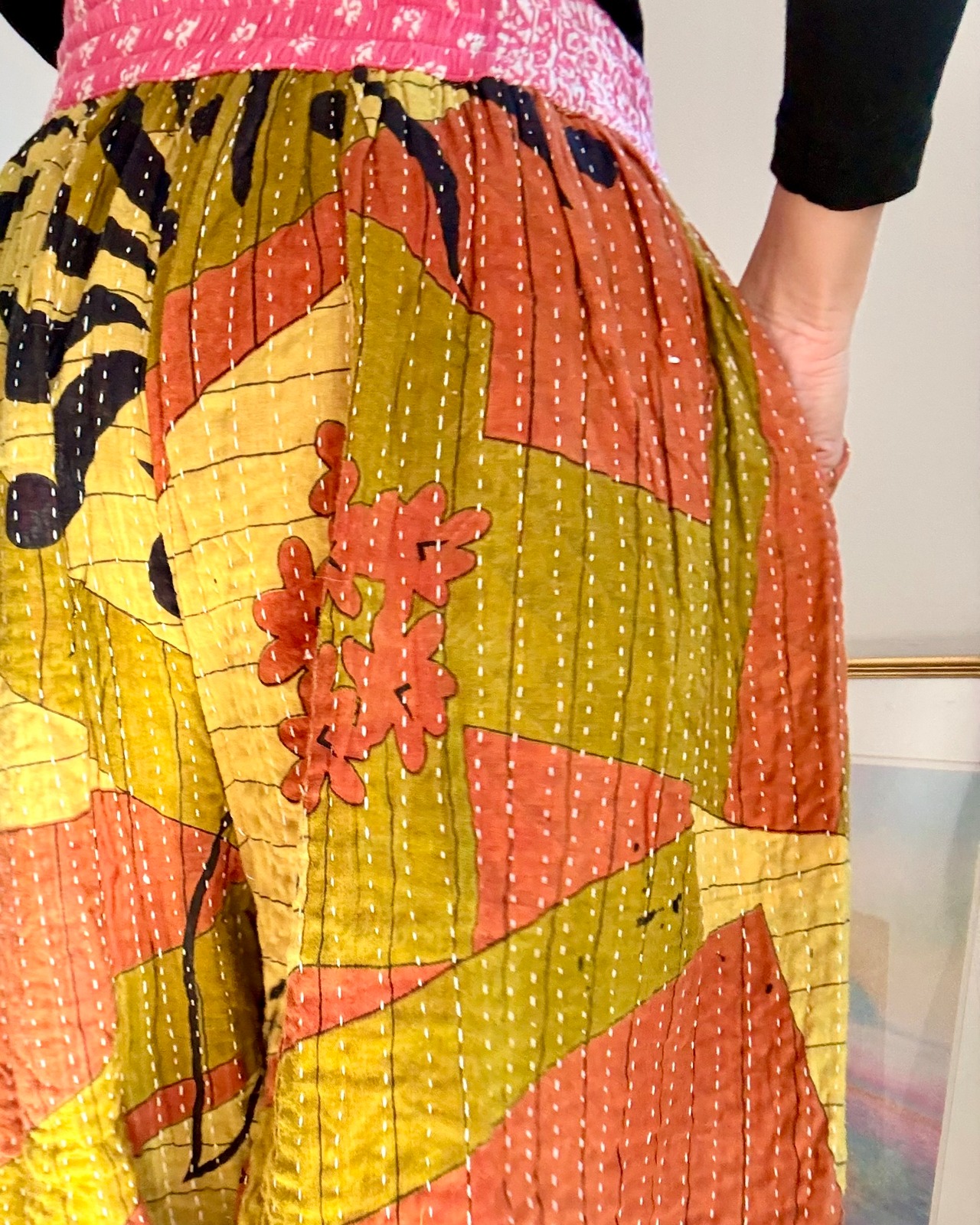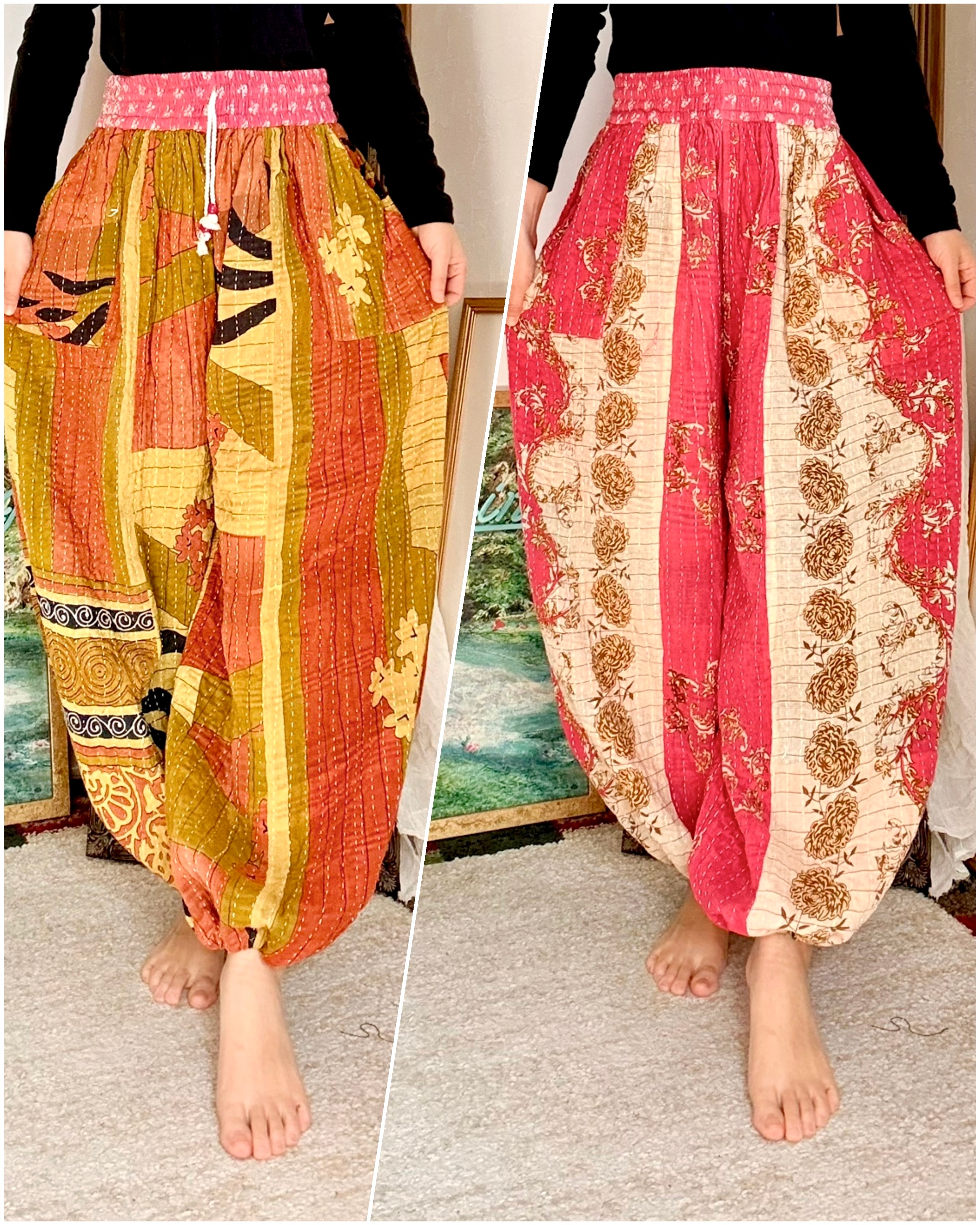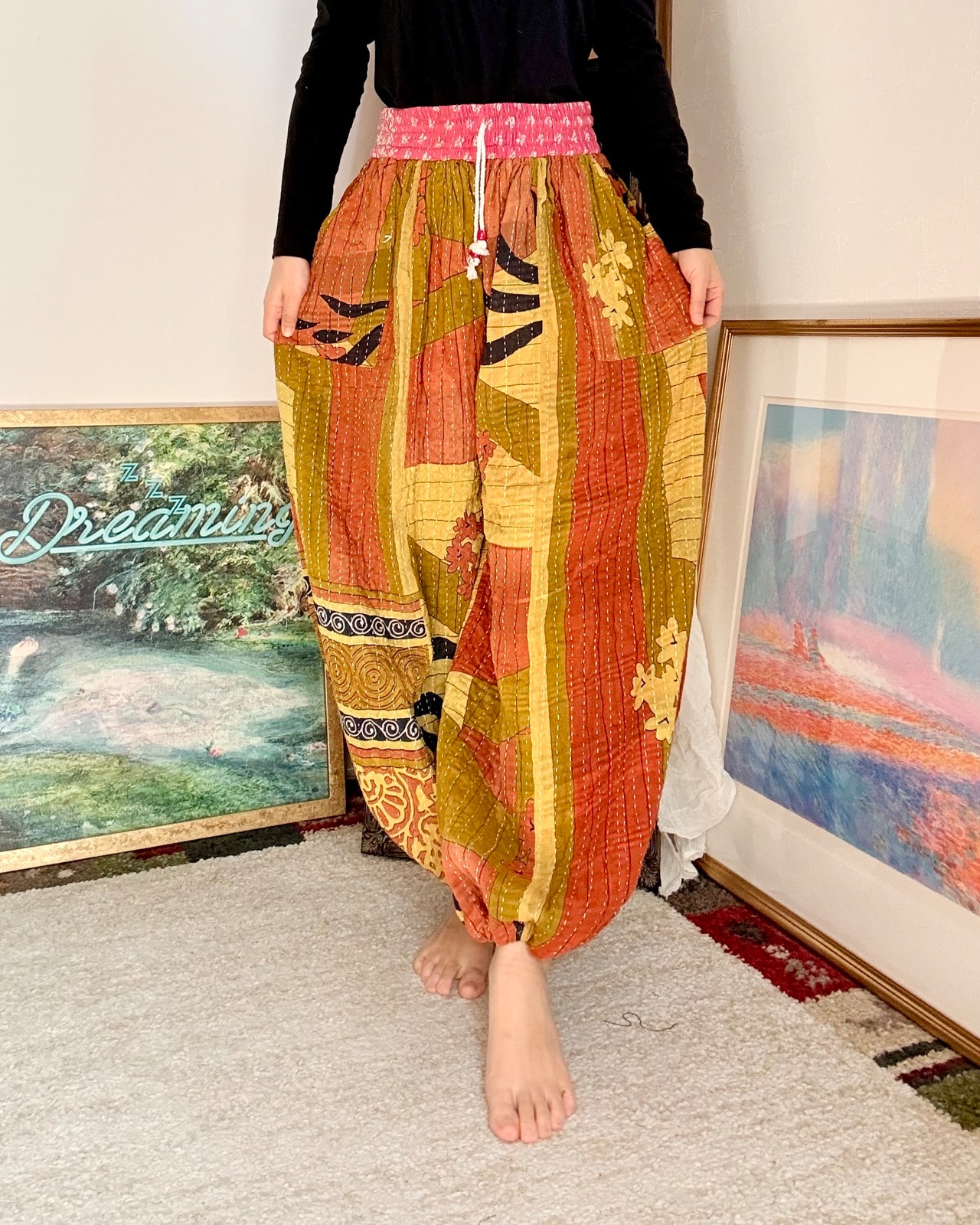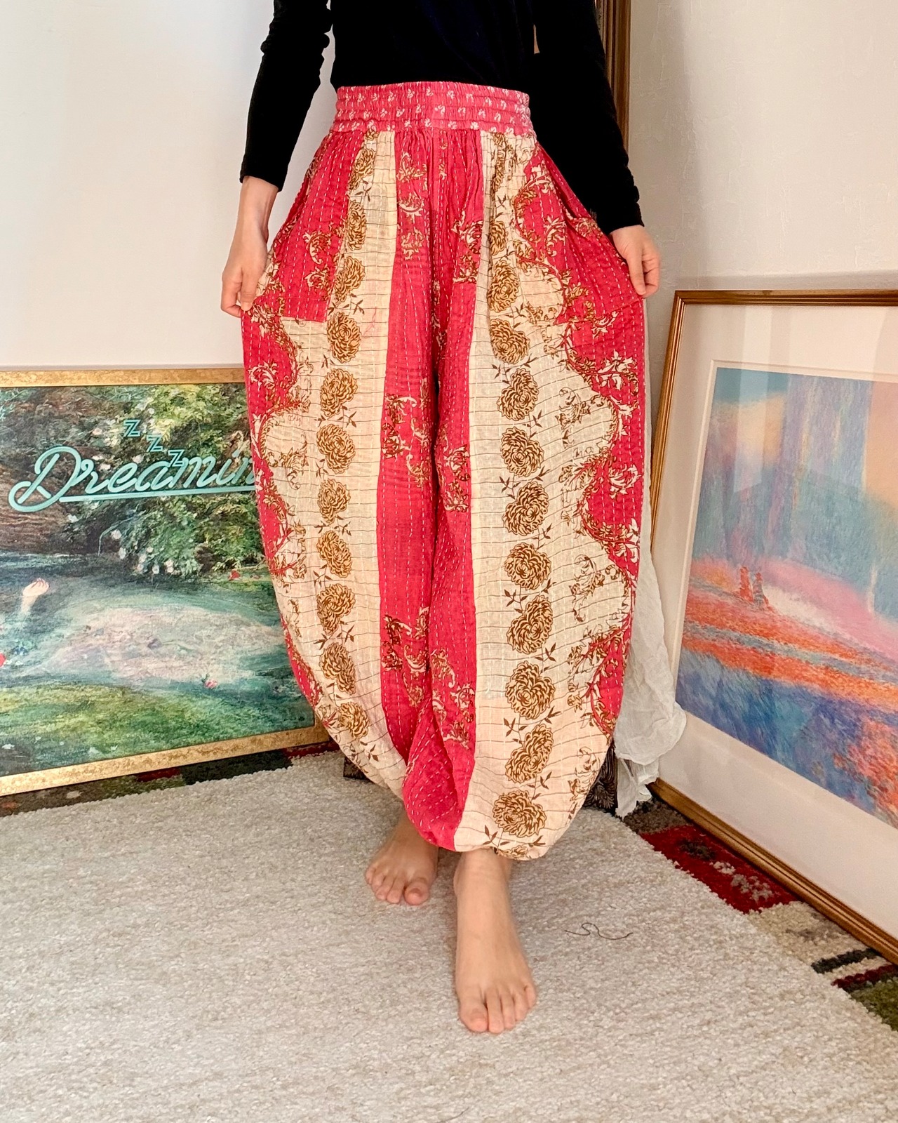 コットンサリーを3〜4枚重ねて刺し子した、厚手タイプのアラジンパンツです✴︎
