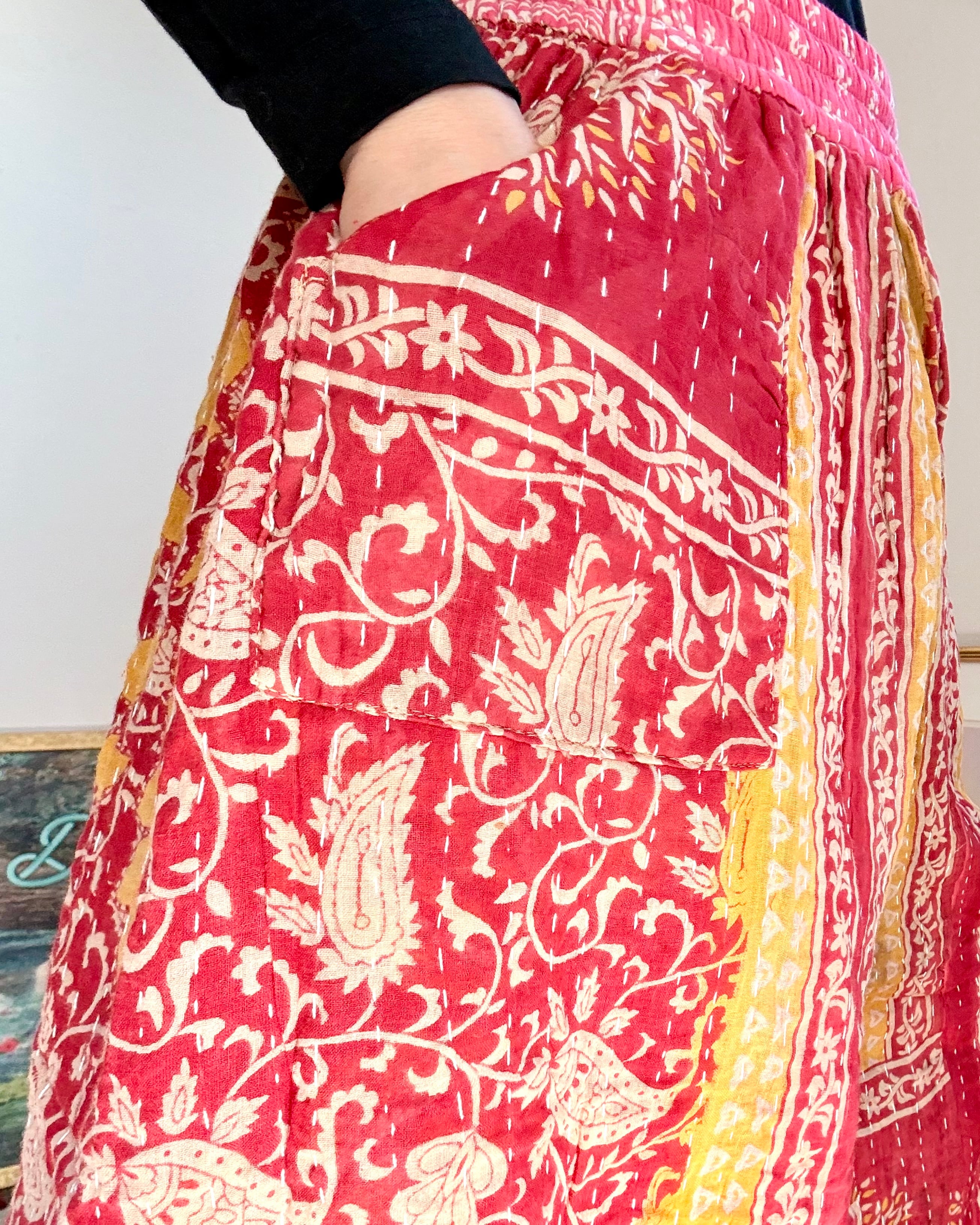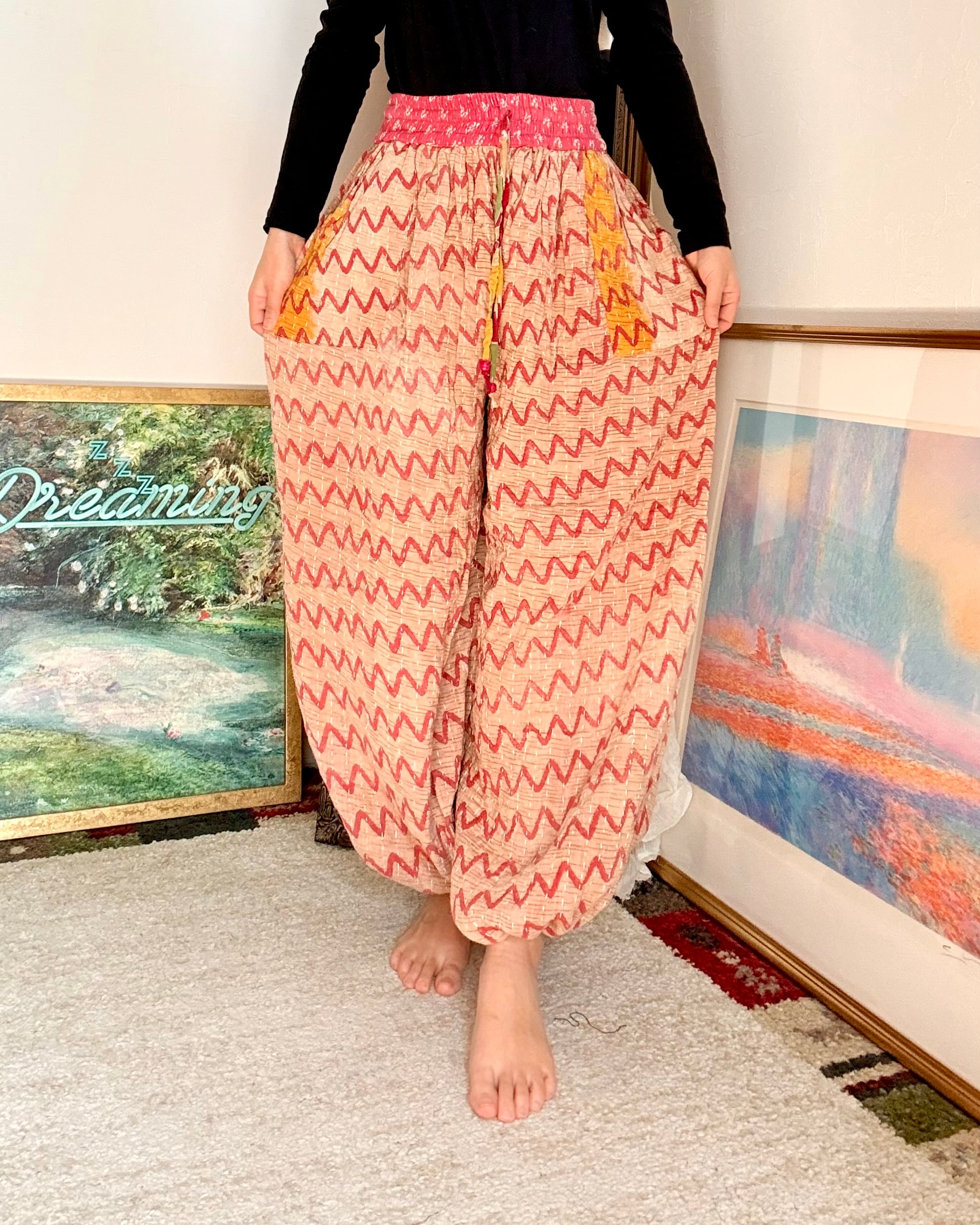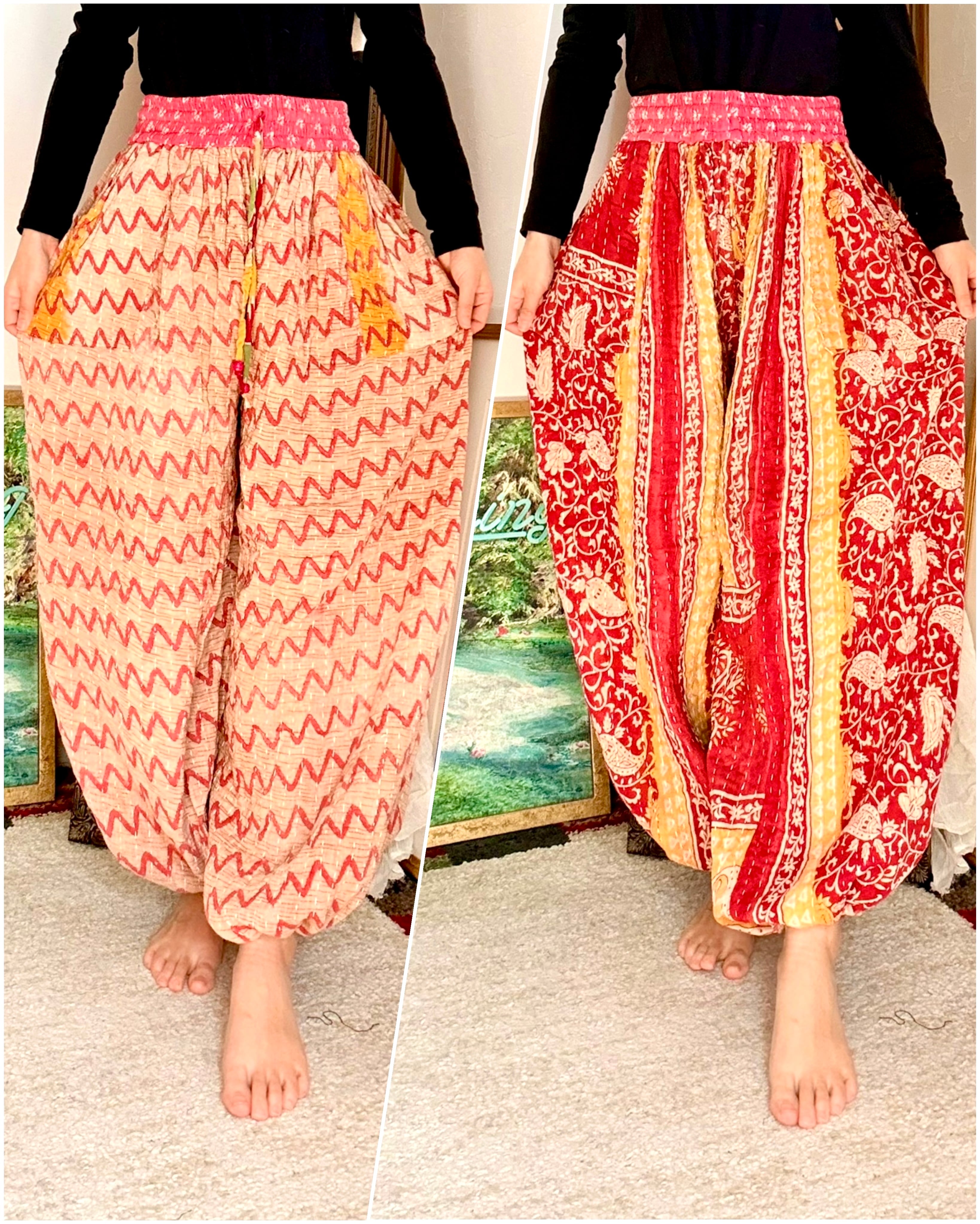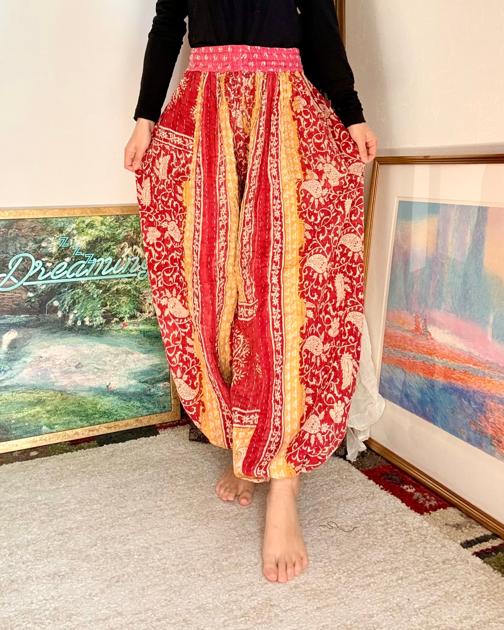 コットンサリーを3〜4枚重ねて刺し子した、厚手タイプのアラジンパンツです✴︎