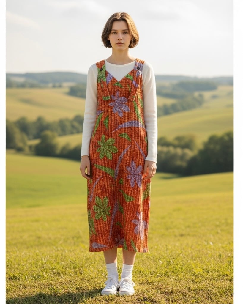 丈/ボタン部分から裾まで約105cm肩紐に長さ調節のボタン穴が3つあります。