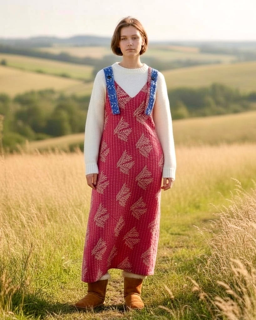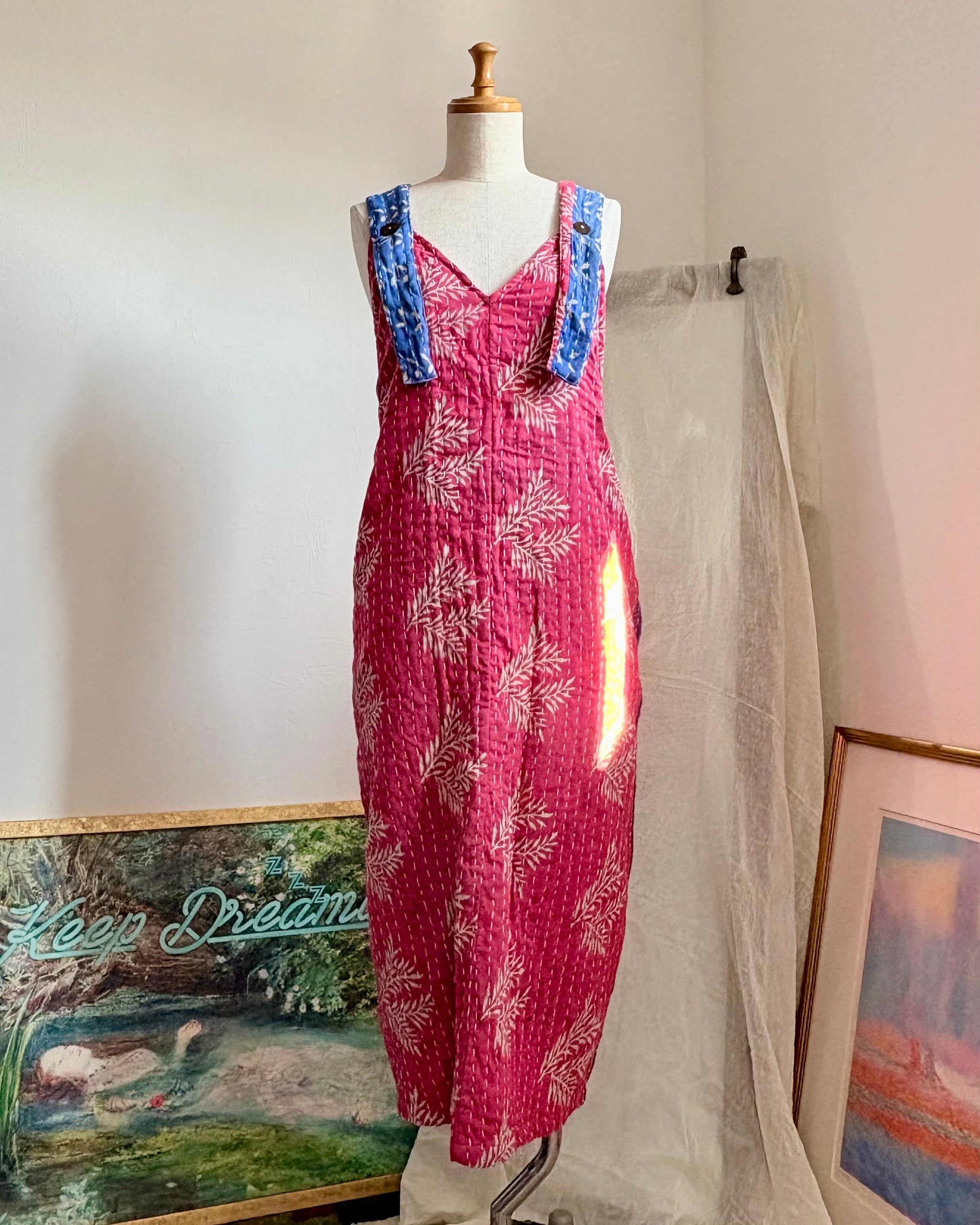 丈/ボタン部分から裾まで約105cm肩紐に長さ調節のボタン穴が3つあります。