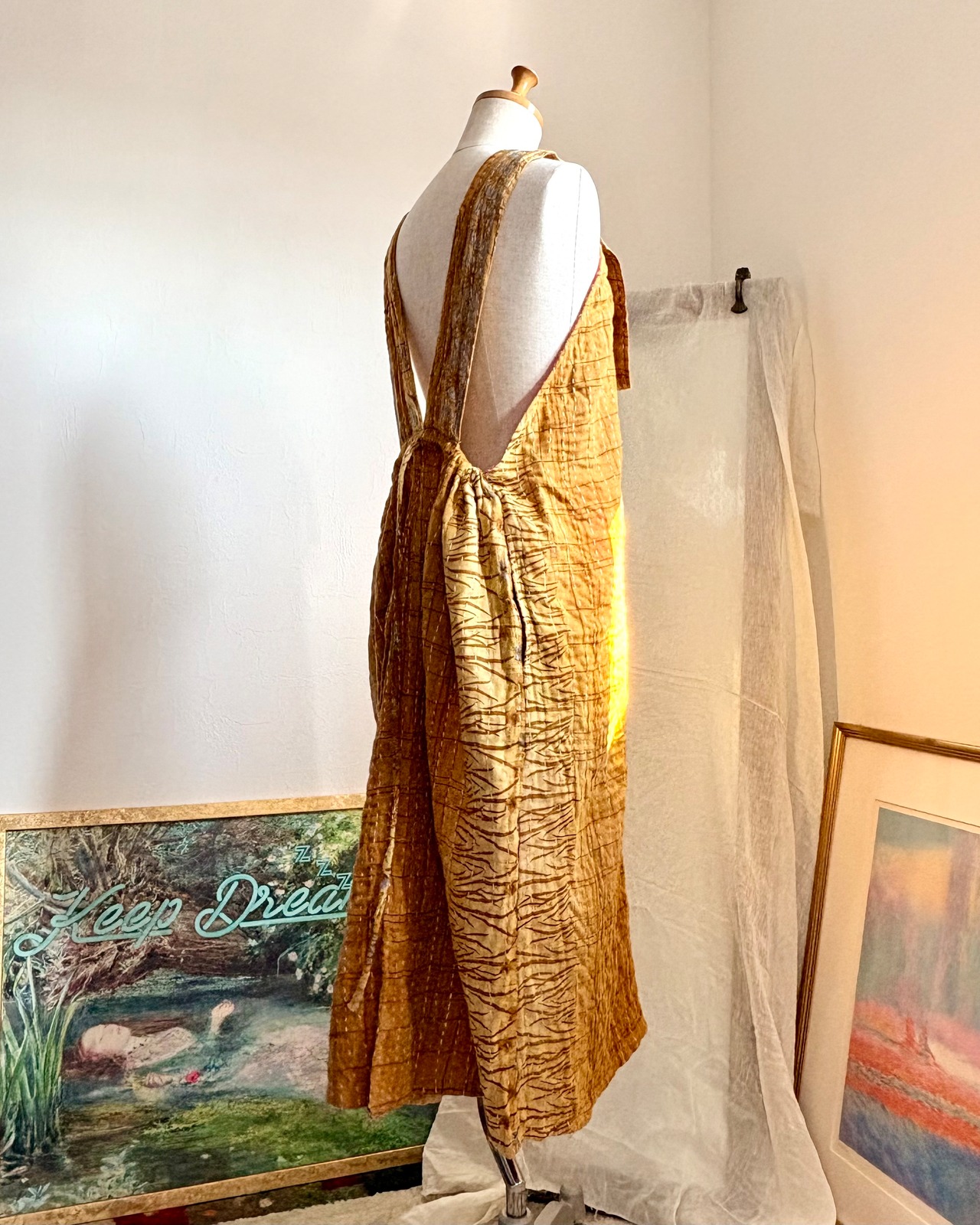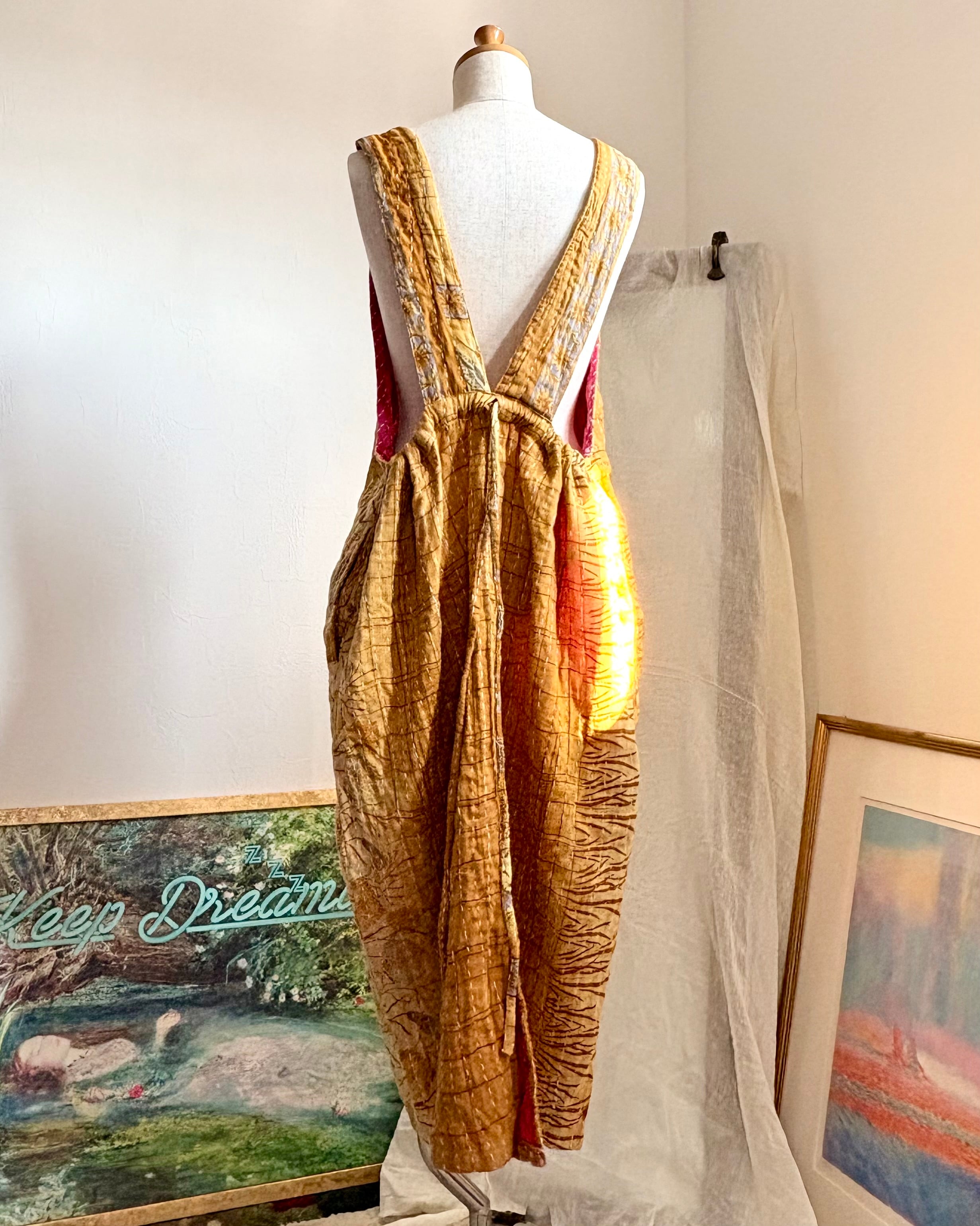 丈/ボタン部分から裾まで約105cm肩紐に長さ調節のボタン穴が3つあります。