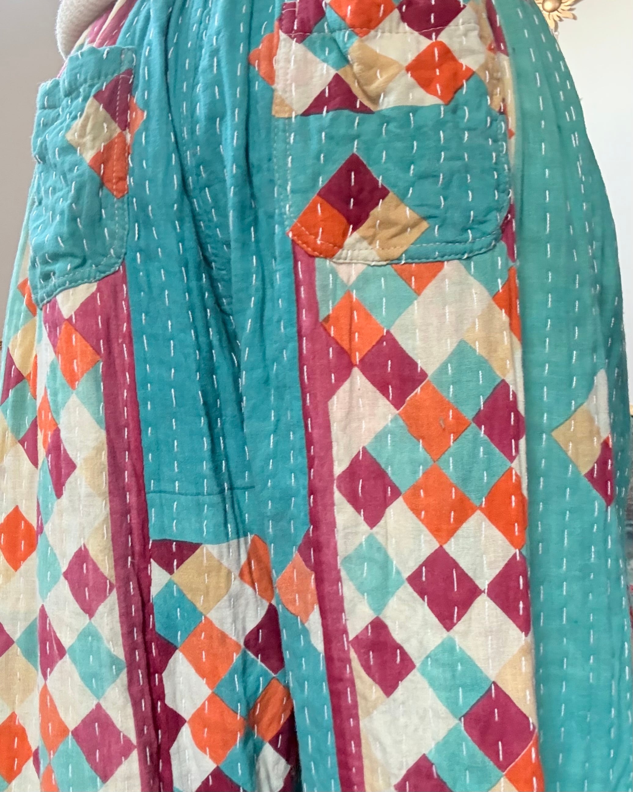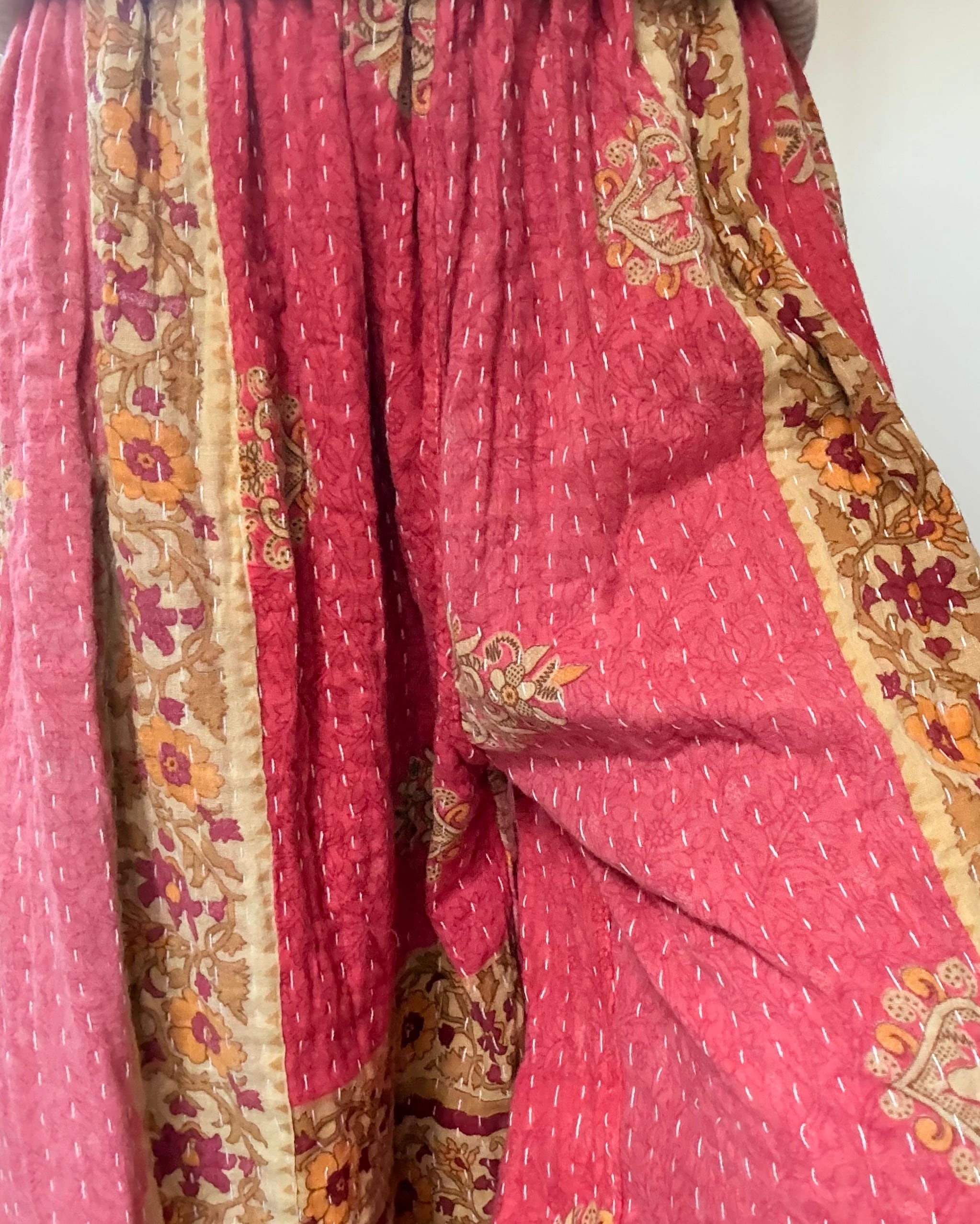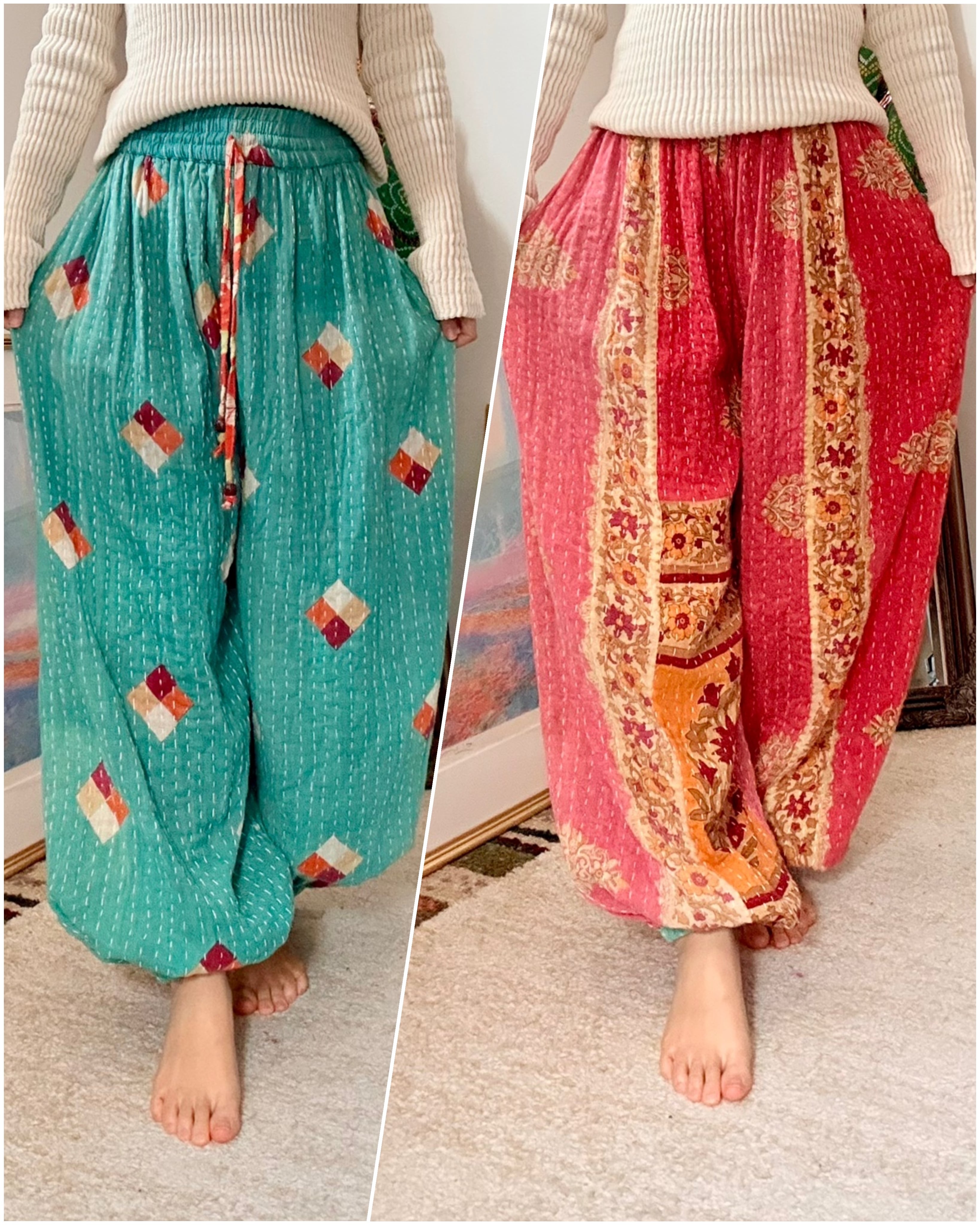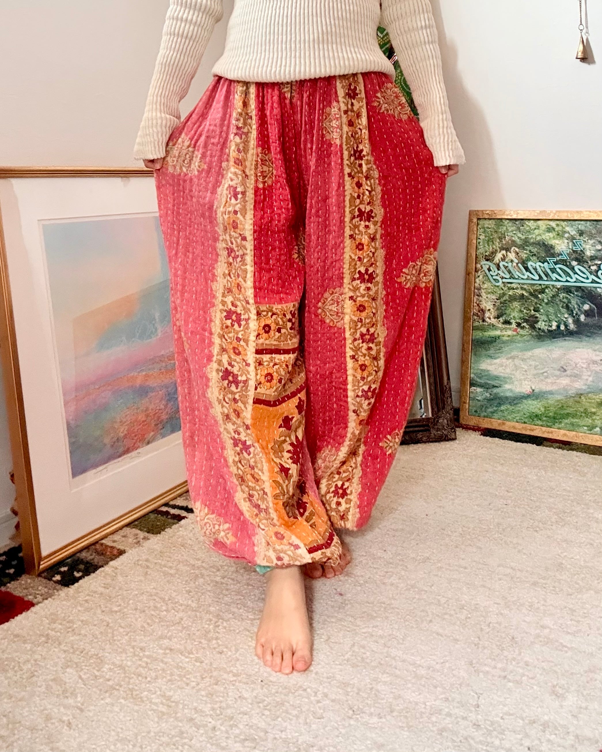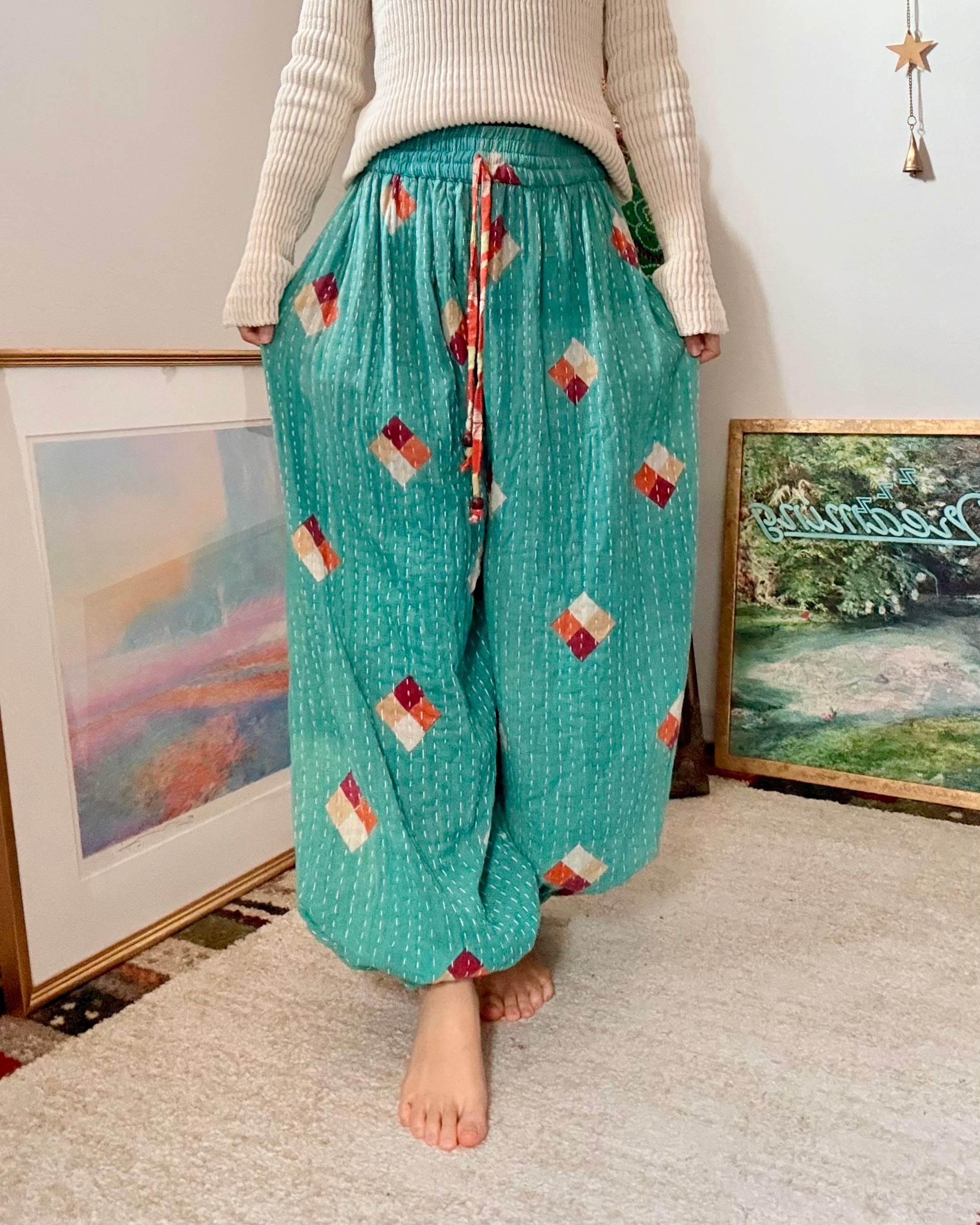 コットンサリーを3〜4枚重ねて刺し子した、厚手タイプのアラジンパンツです✴︎