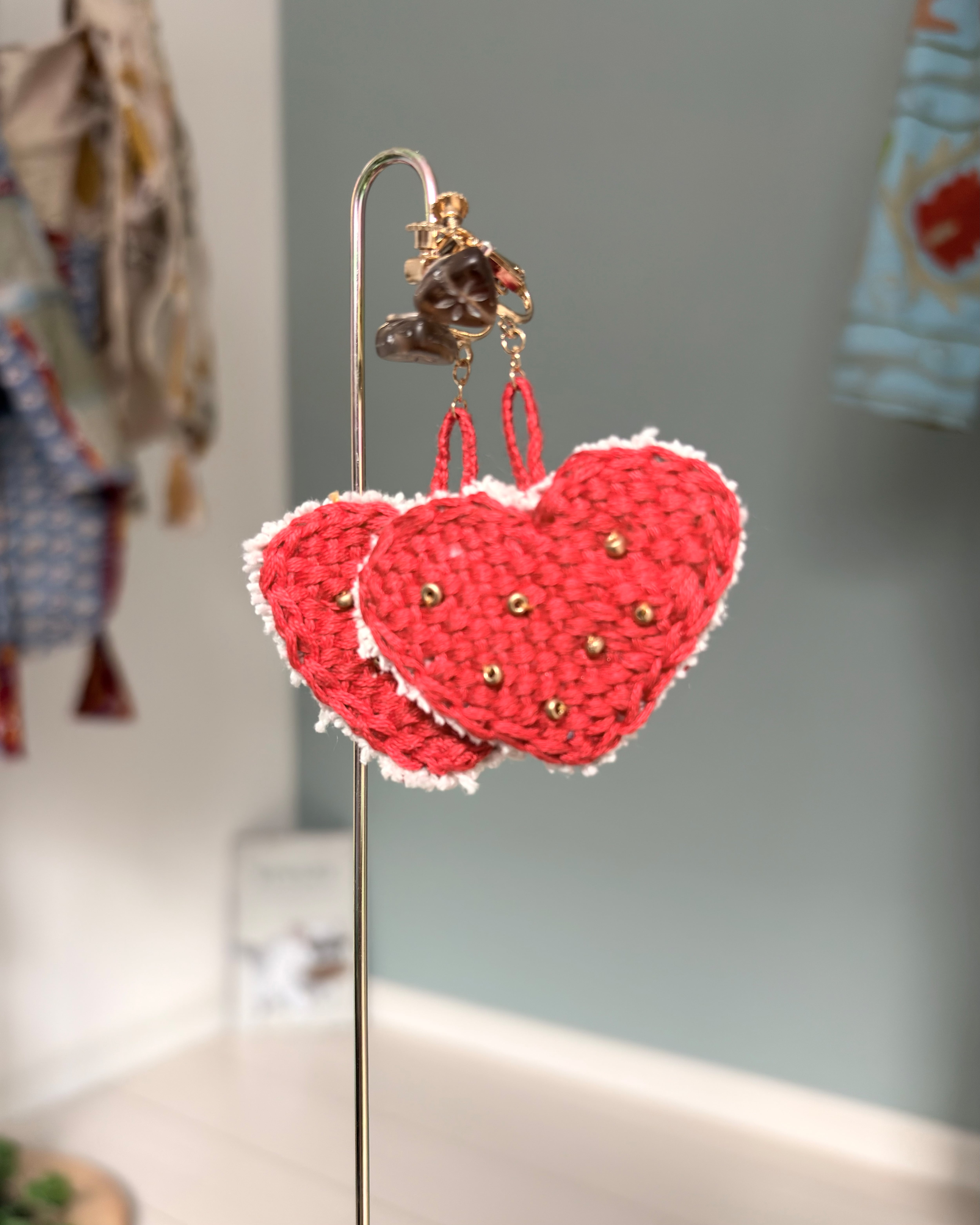 コットン刺繍ハート/イヤリング/ピアス/3カラー