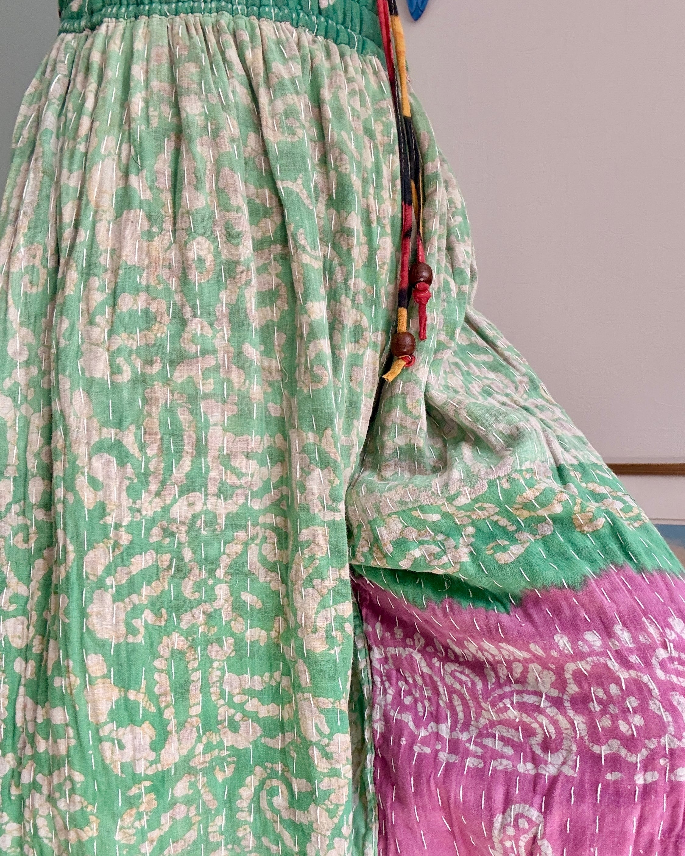 ヴィンテージコットンサリーを3〜4枚重ねて刺し子した、厚手タイプのアラジンパンツです✴︎