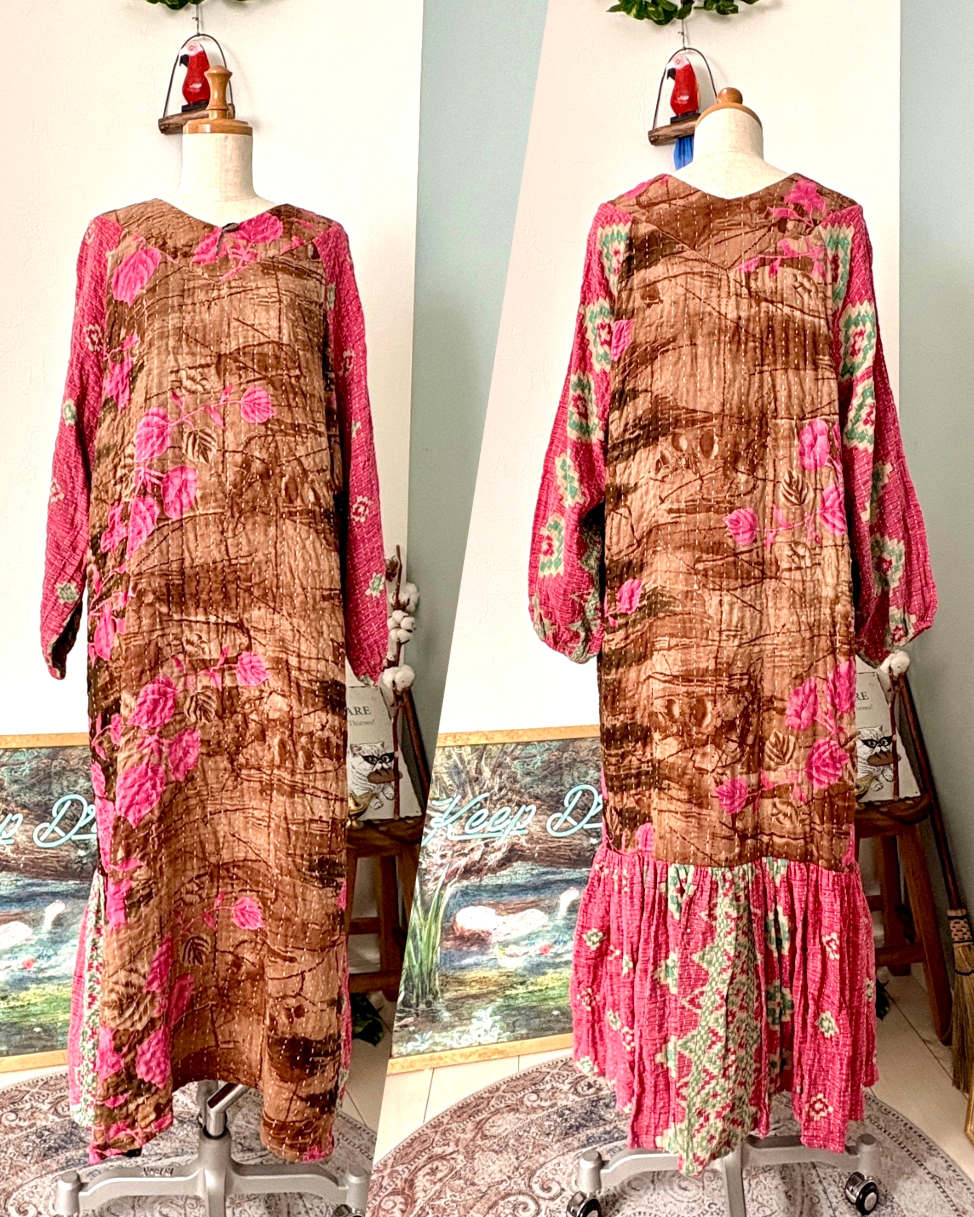 ヴィンテージカンタで作る、すべて一点ものの色柄、世界にひとつだけのワンピースです✴︎