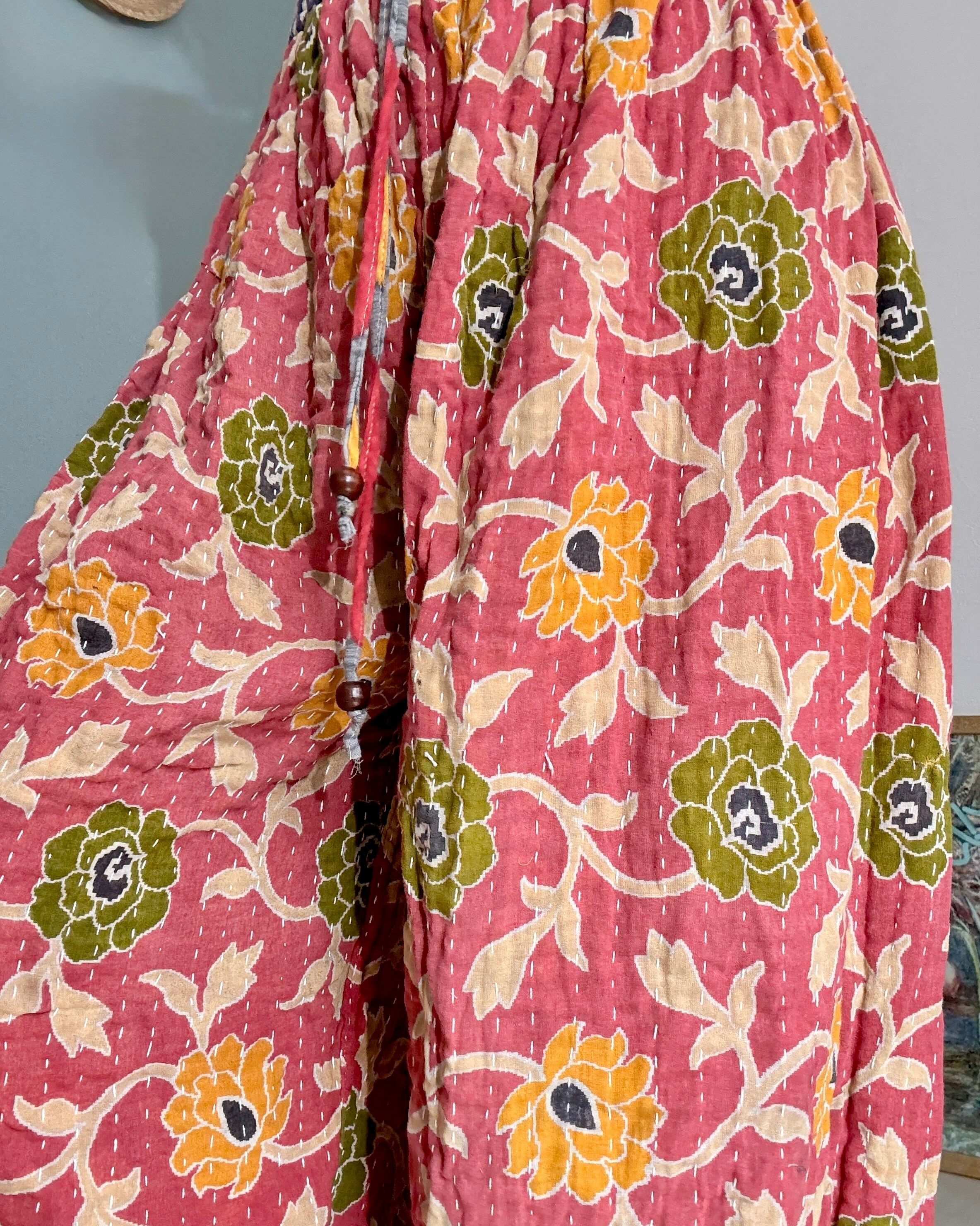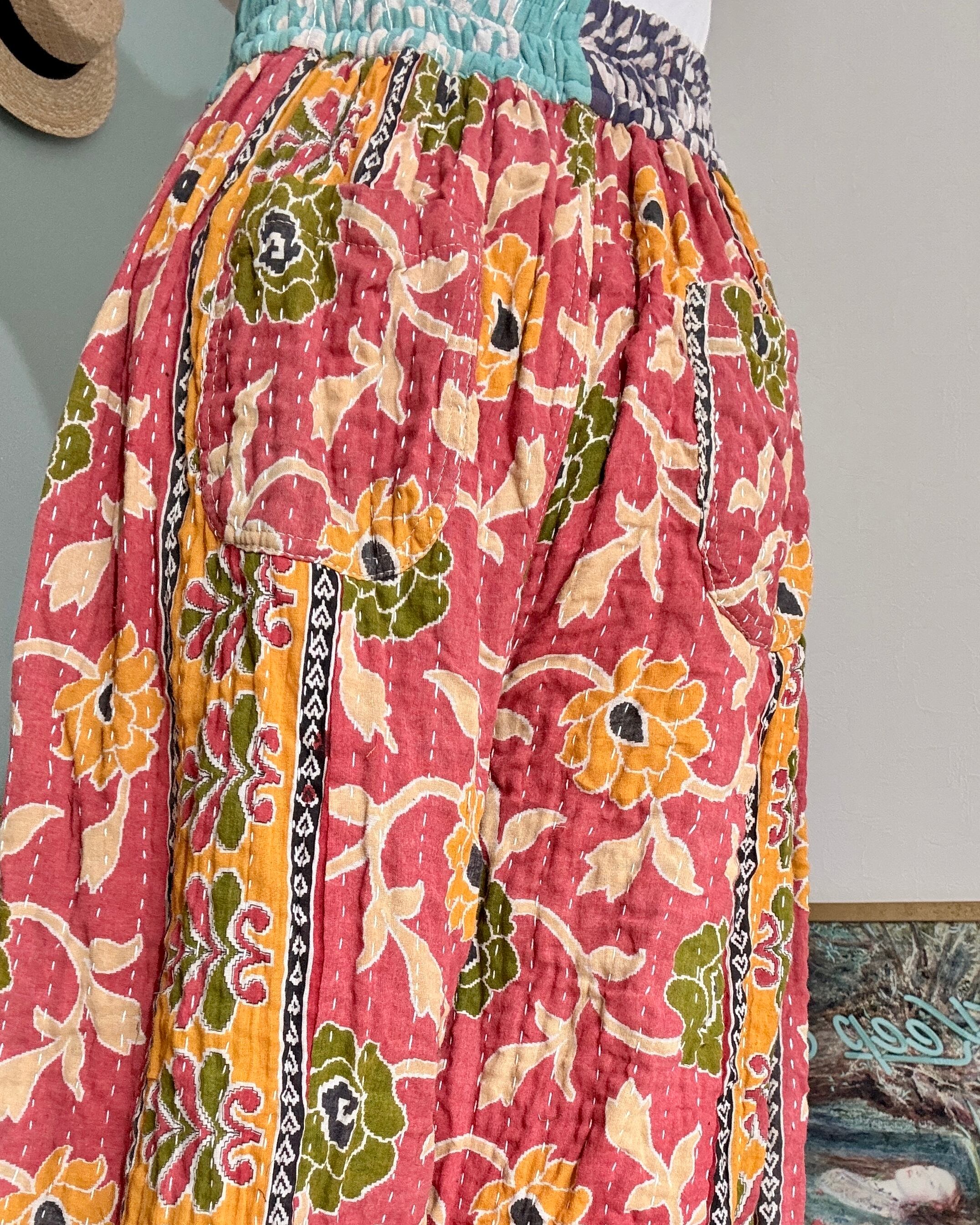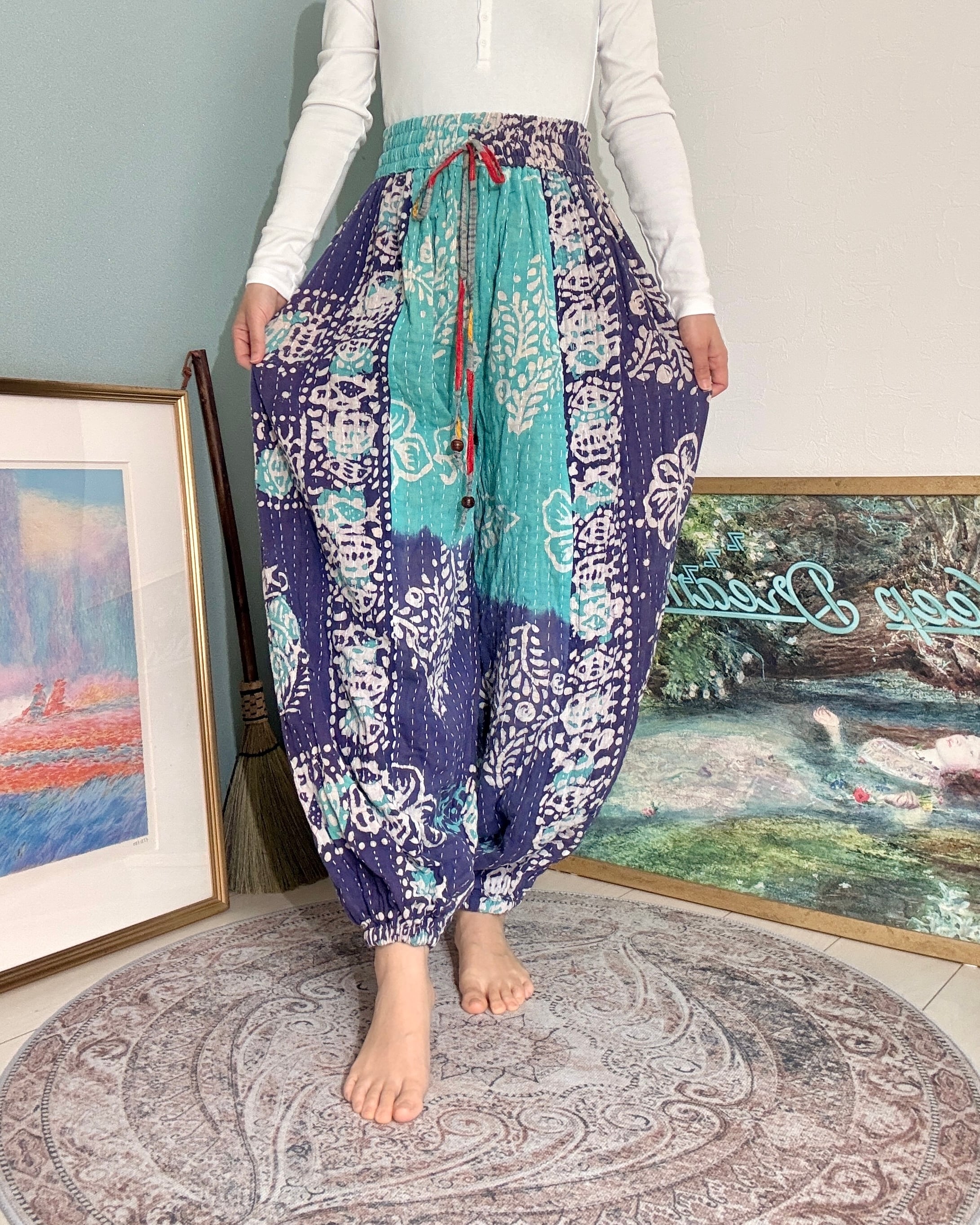 ヴィンテージコットンサリーを3〜4枚重ねて刺し子した、厚手タイプのリバーシブルアラジンパンツ✴︎