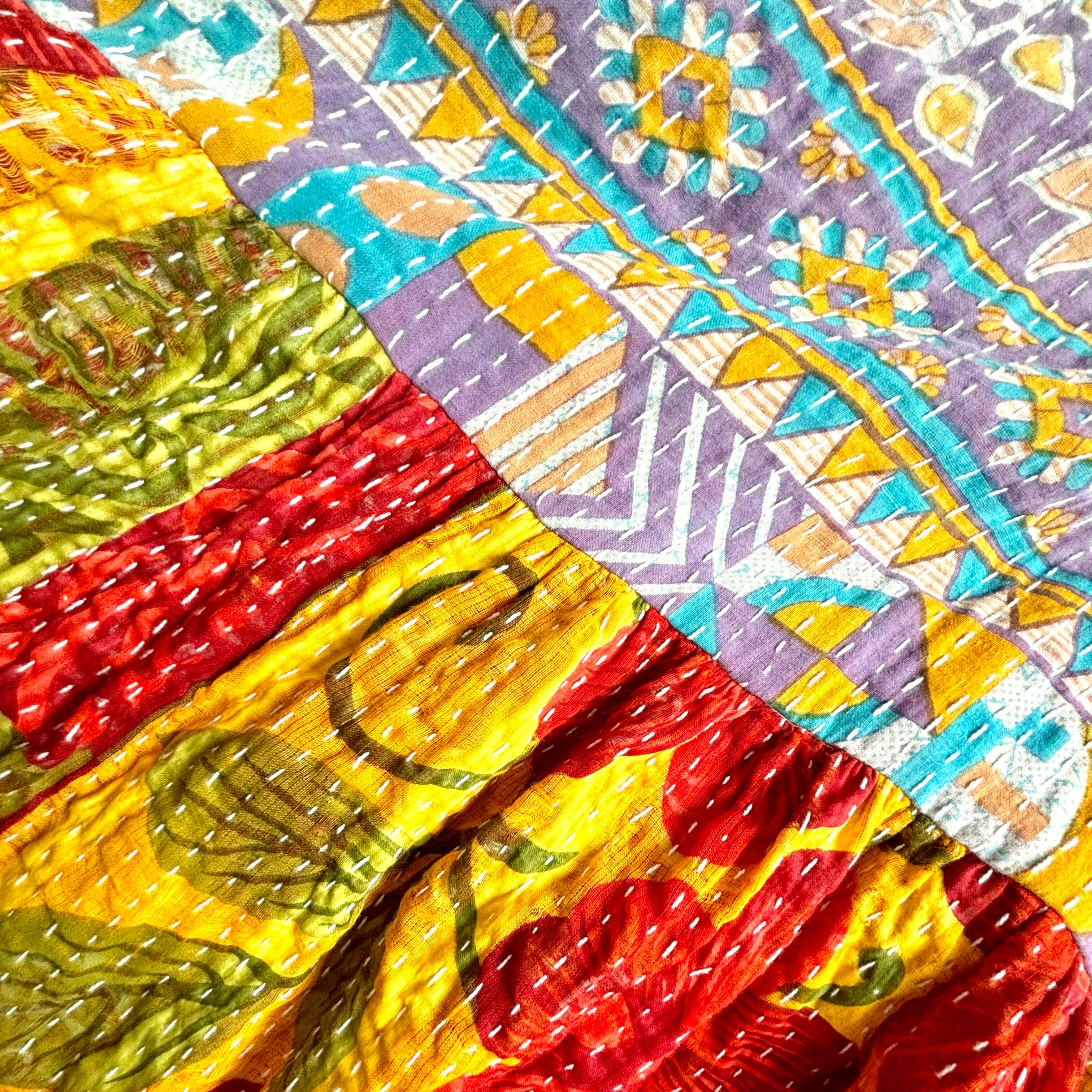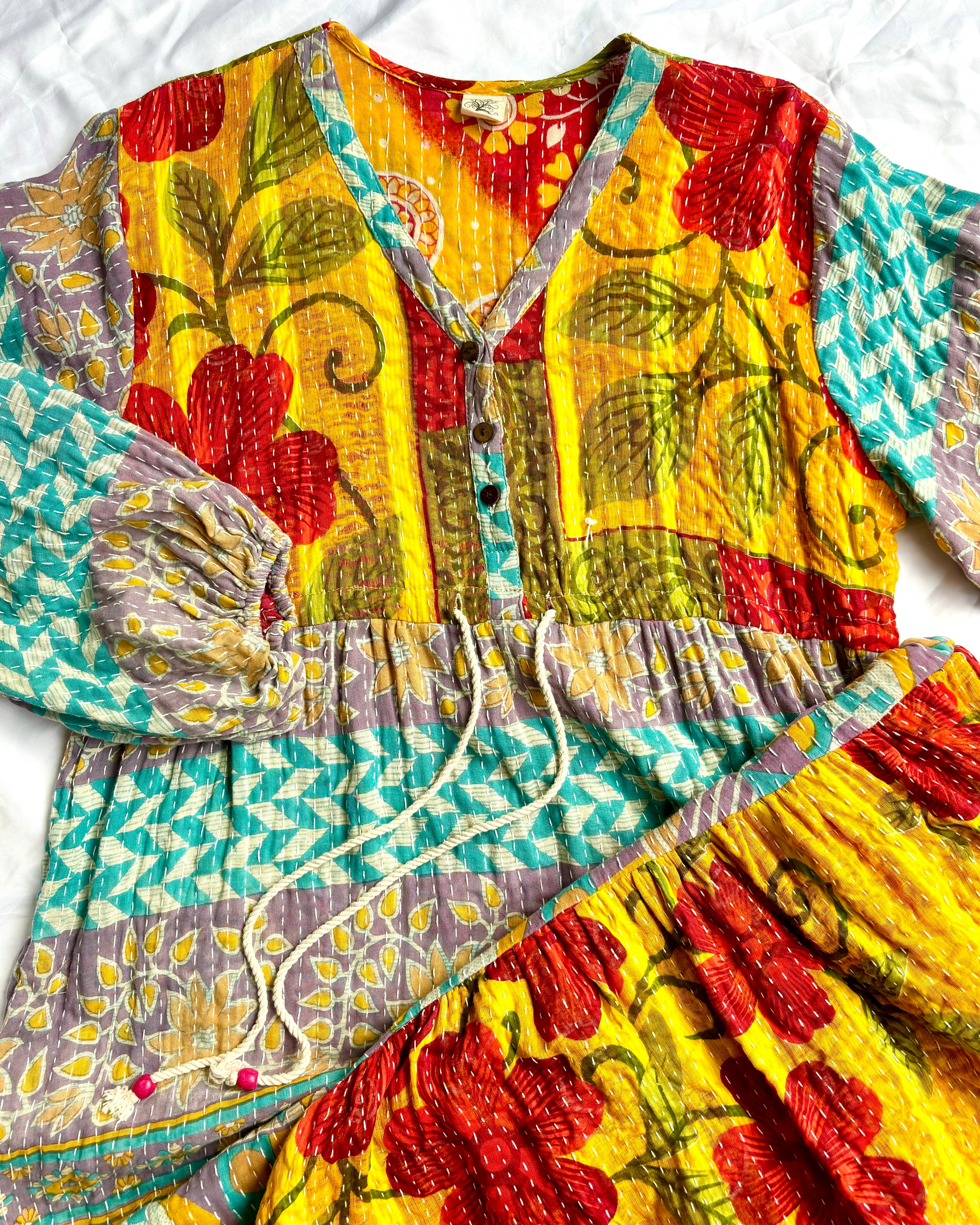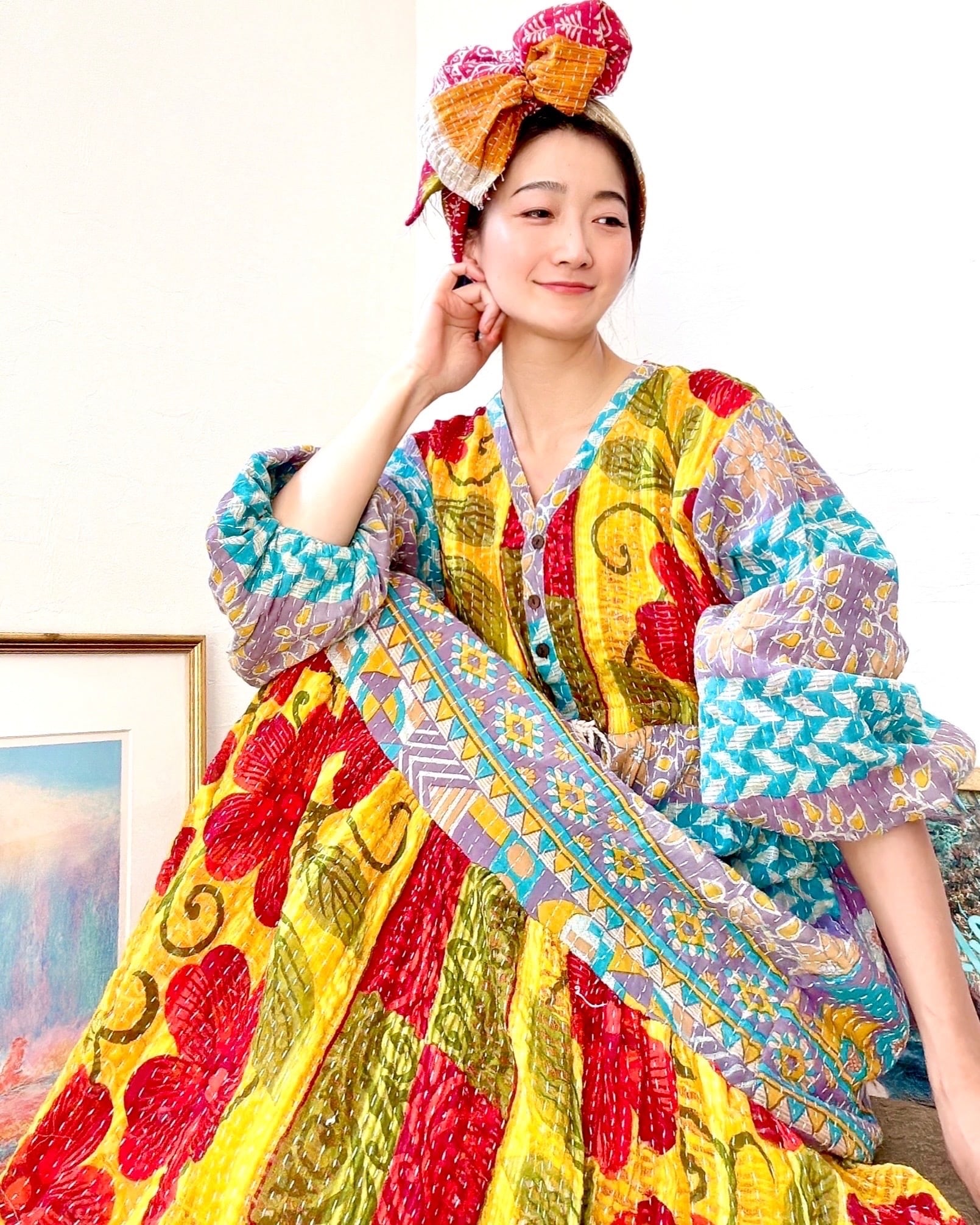 ご覧の通りの華やかさと可愛さで、大地のエネルギーを感じる色柄、スカートの裾を待って土の上で裸足で踊り出したくなるような、唯一無二の素敵すぎる1着です♡